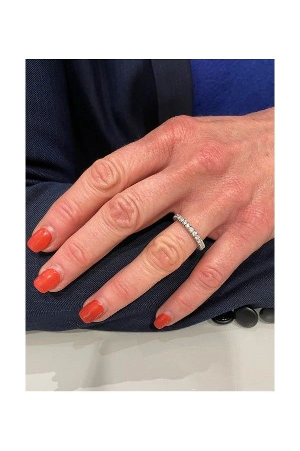En parfait état, cette alliance tour complet est sertie de diamants.