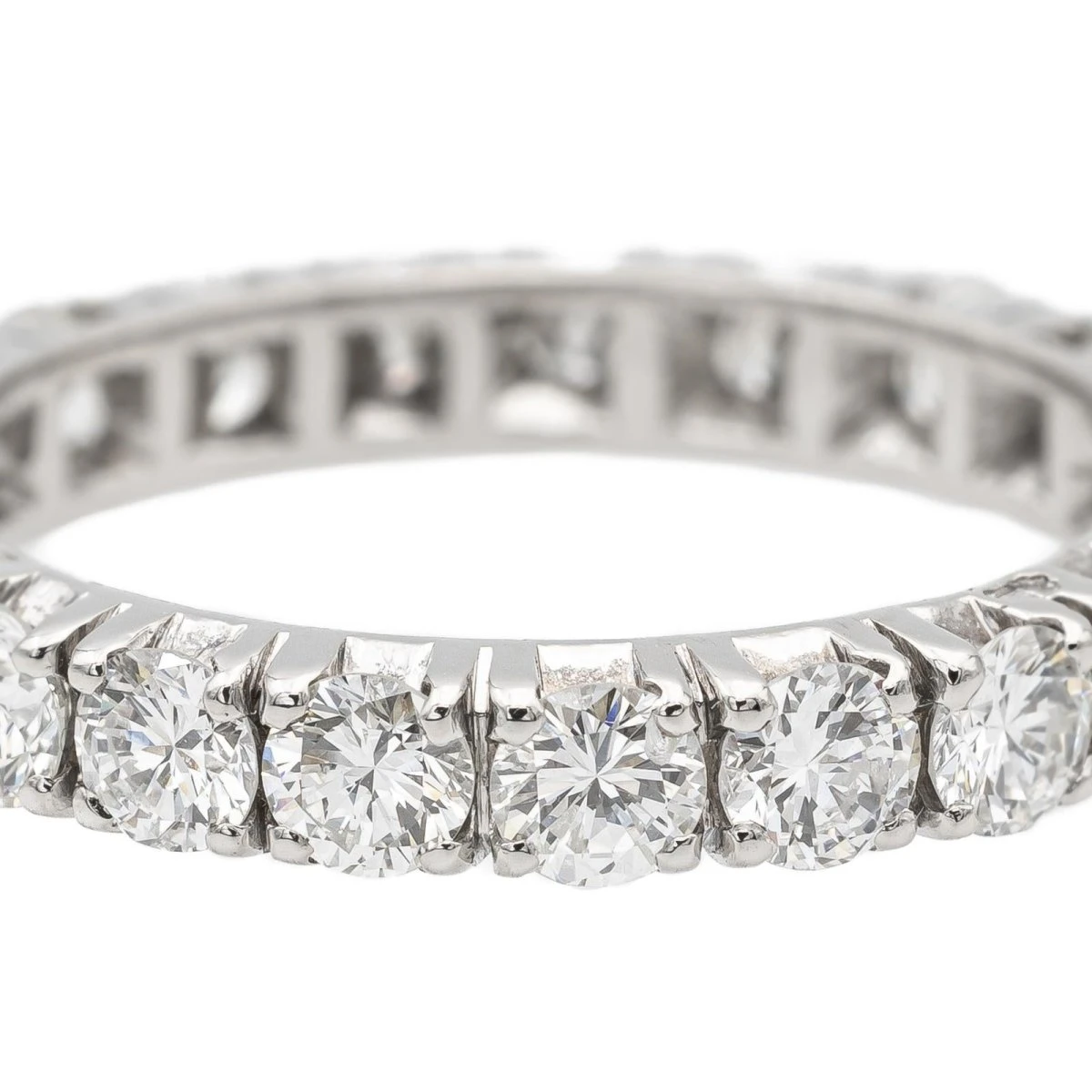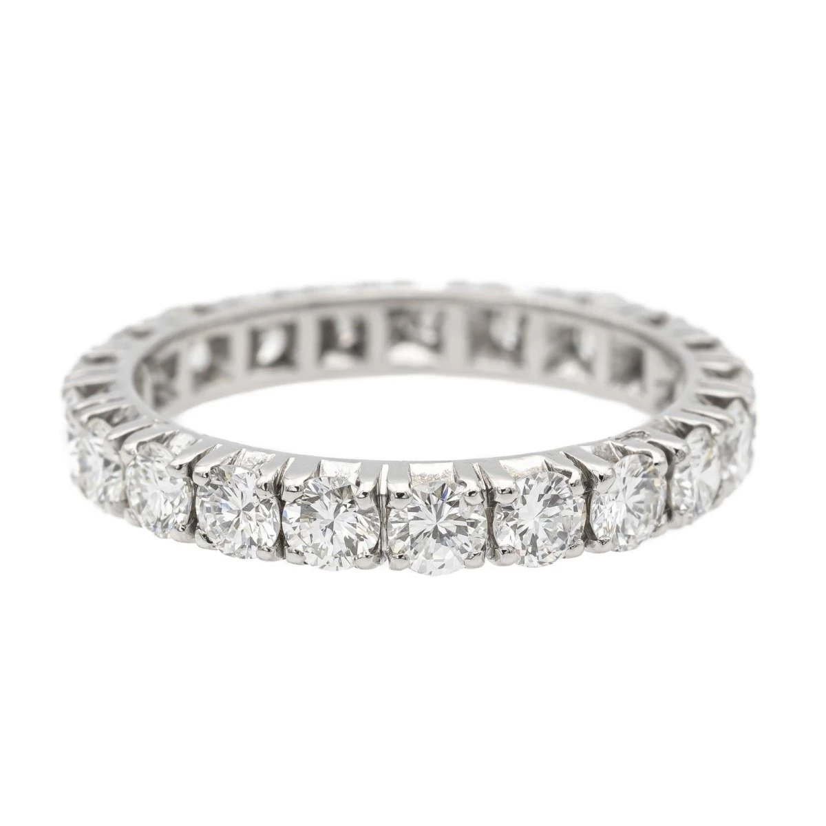 Alliance tour complet en or blanc 750 millièmes (18 carats). sertie de 21 diamants taille brillant. d’environ 0.1 ct chacun. poids total diamants: environ 2.1 cts. largeur sur le dessus: 0.32 cm. tour de doigt: 57. poids total: 4.16 g. poinçon tête d’aigle. excellent état