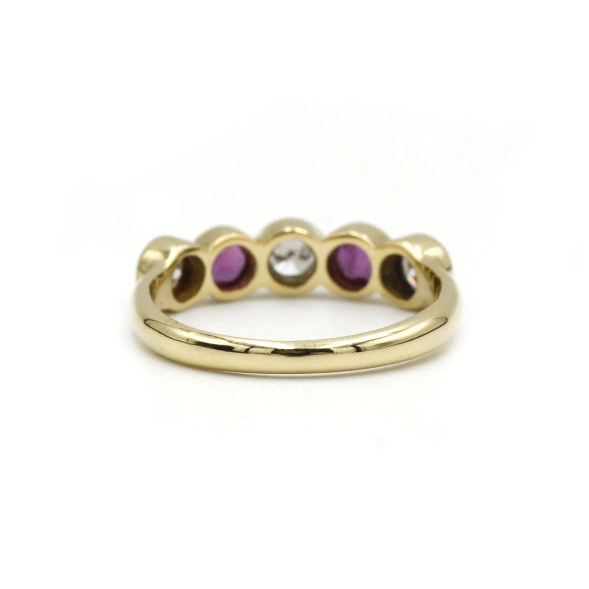 Bague Alliance En Or Jaune, Rubis Et Diamants
