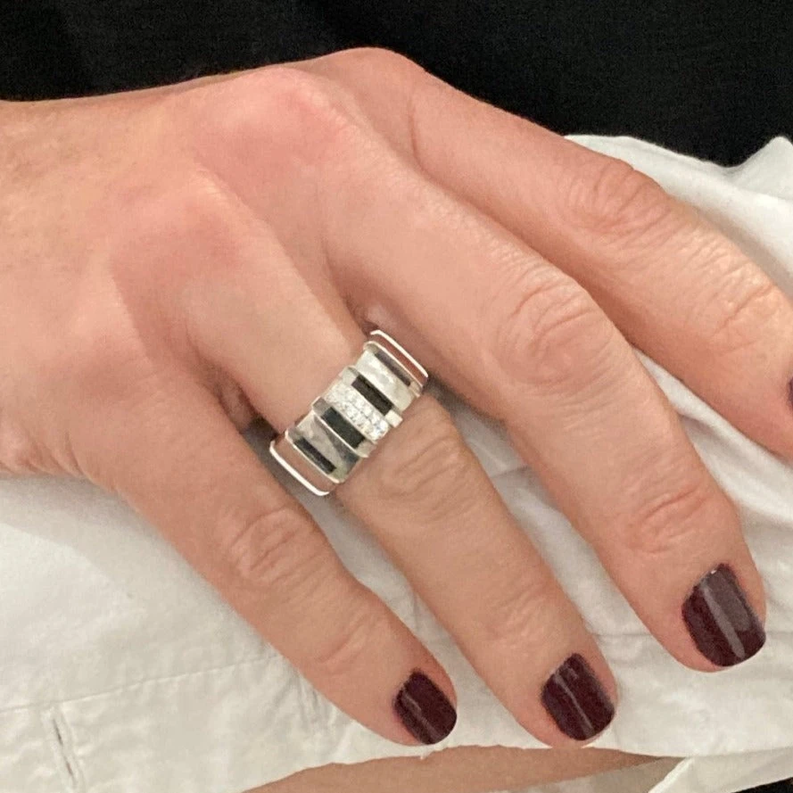 Bague Bandeau CHAUMET « Class One » en or blanc 18 carats, dont un des maillons est orné de diamants.