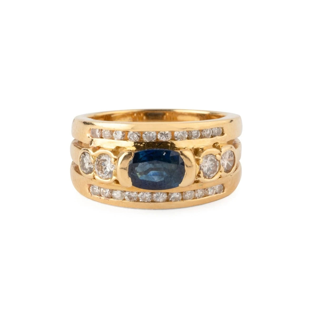Bague Bandeau En Or Jaune, Saphir Et Diamants