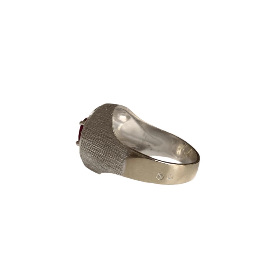 Bague Chevalière En Or Gris, Rubis Et Diamant