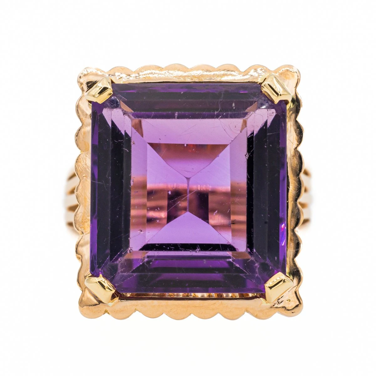 Bague en or rose 750 millièmes (18 carats). sertie d’une améthyste d’environ 19.5 ct. largeur sur le dessus: 1.9 cm. poids total: 17.90g. excellent état