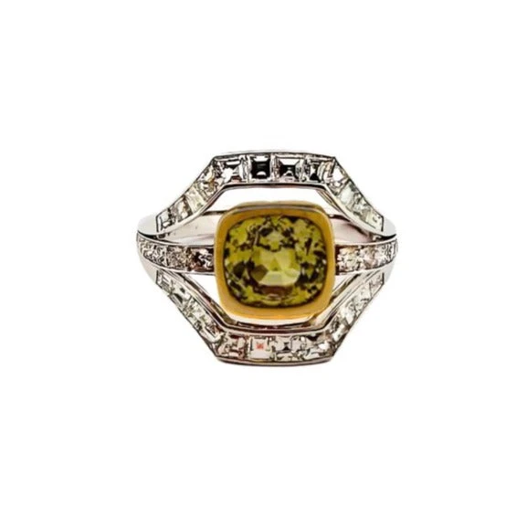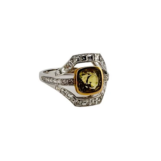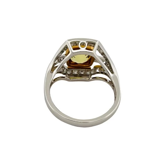 Bague En Or Blanc, Saphir Jaune, Et Diamant