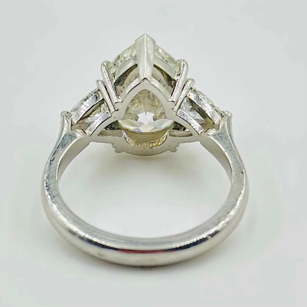 Poids du diamant central : 4,59 carats. Poinçon d’origine français tête d’aigle.