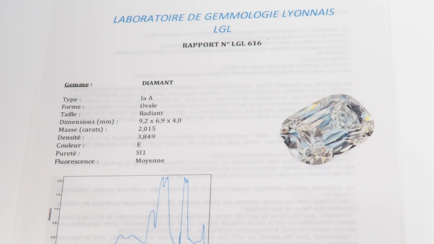 - Au centre : un diamant taille coussin qualité E SI1 de 2,015 cts ;