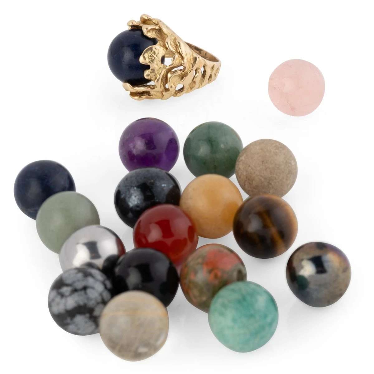 Bague GILBERT ALBERT en or jaune 18 carats avec 18 perles interchangeables.