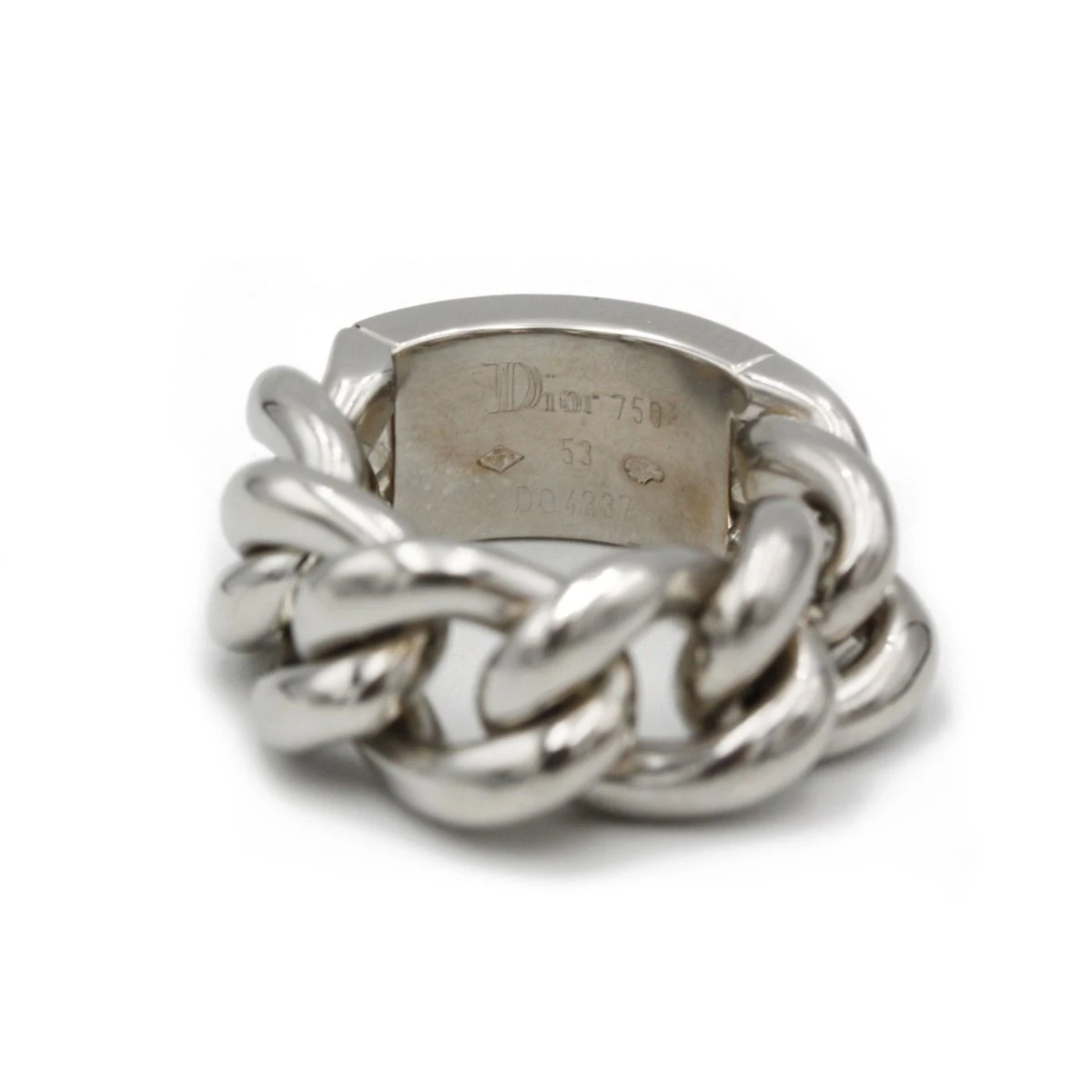 Bague souple signée DIOR et numérotée, de la collection « Gourmette », en or blanc 750‰, composé d’une plaque sertie d’un pavage de diamants taille brillant (0,50 carat environ).