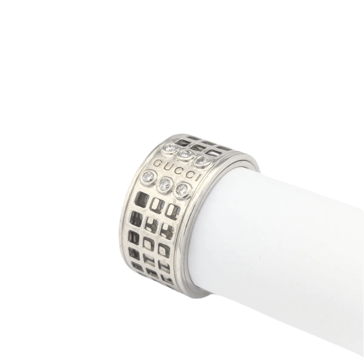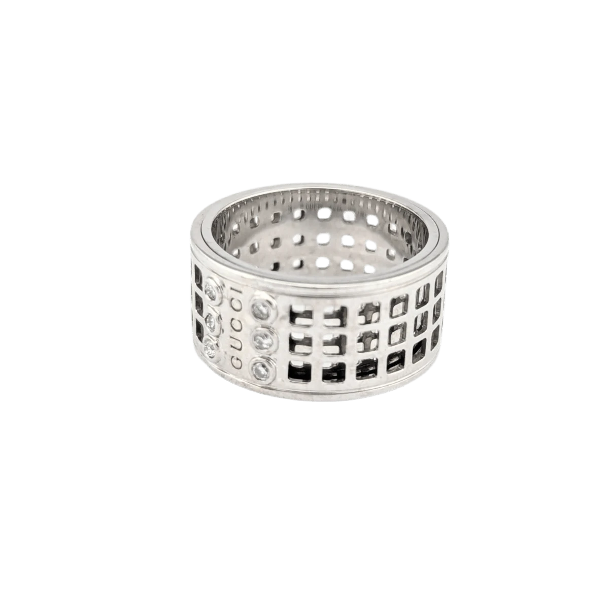 Bague GUCCI « Large Scroll » En Or Blanc Et Diamants