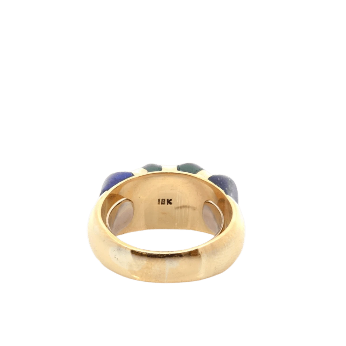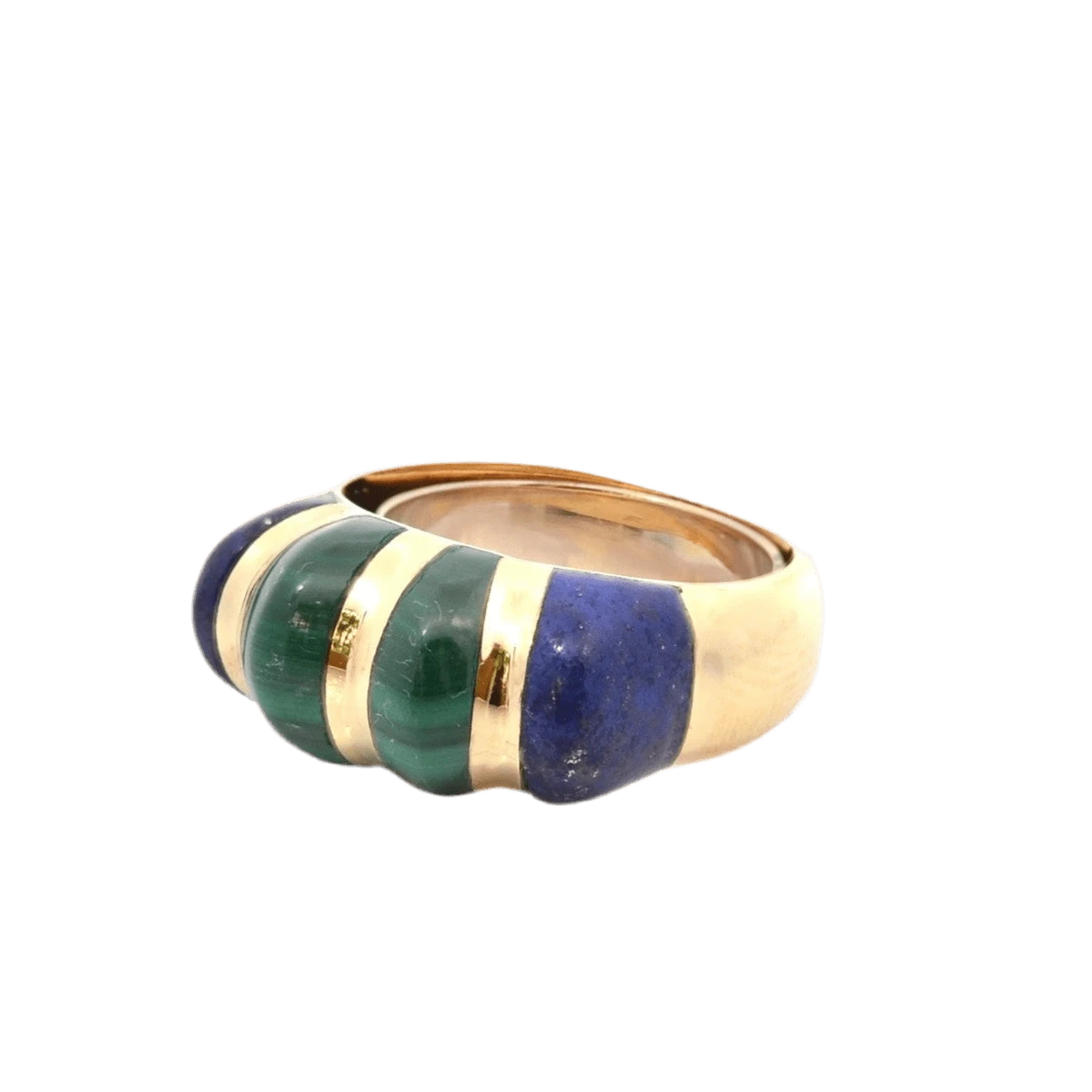 Bague Jonc en or jaune 18 carats, sertie d’une malachite et de lapiz-lazuli