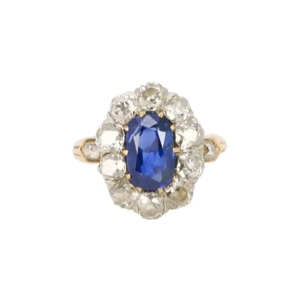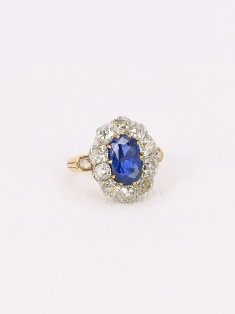 Bague Marguerite Ancienne Or Rose, Saphir Et Diamants