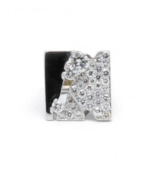 Bague « chevalière » en or blanc 750. sertie d’un diamant I/SI1(certifié HRD) de 0.73 carat et de diamants autour (2.75 carats environ).