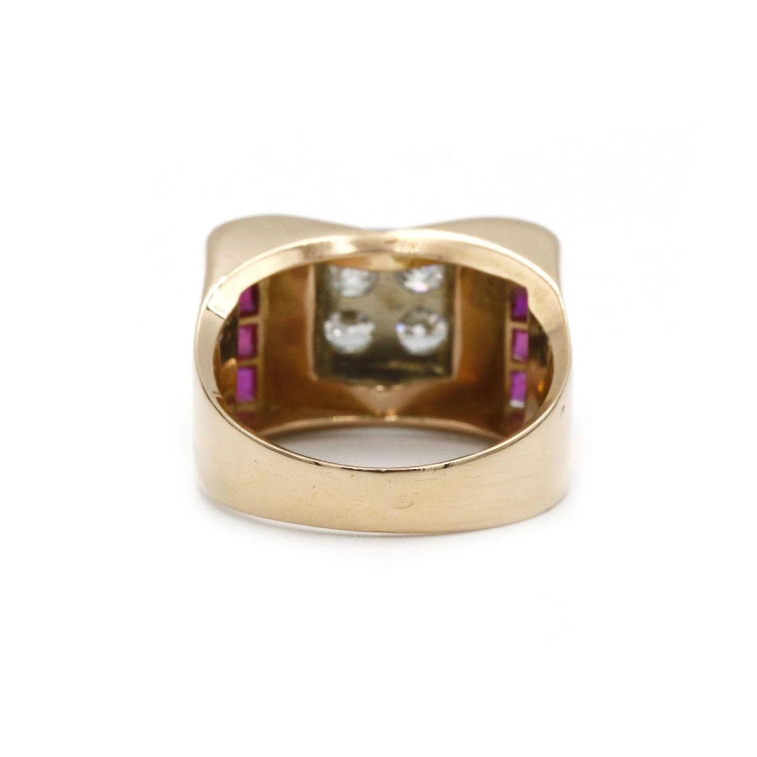 Bague TANK en or jaune 750‰, sertie de 4 diamants (0,40 carat environ) et de 8 rubis calibrés.