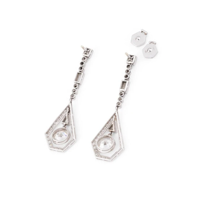 Boucles D’oreilles Art Déco En Platine Et Diamants