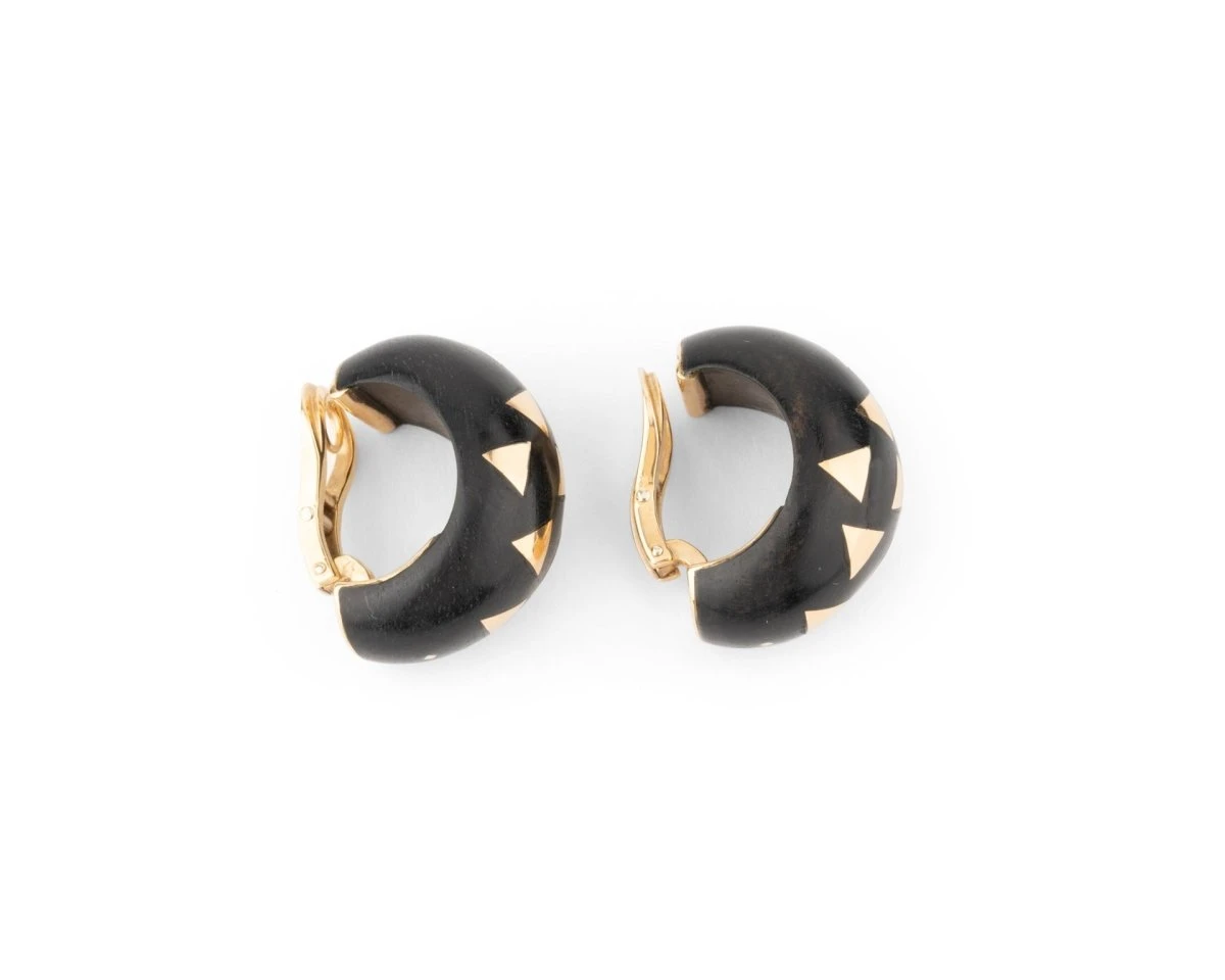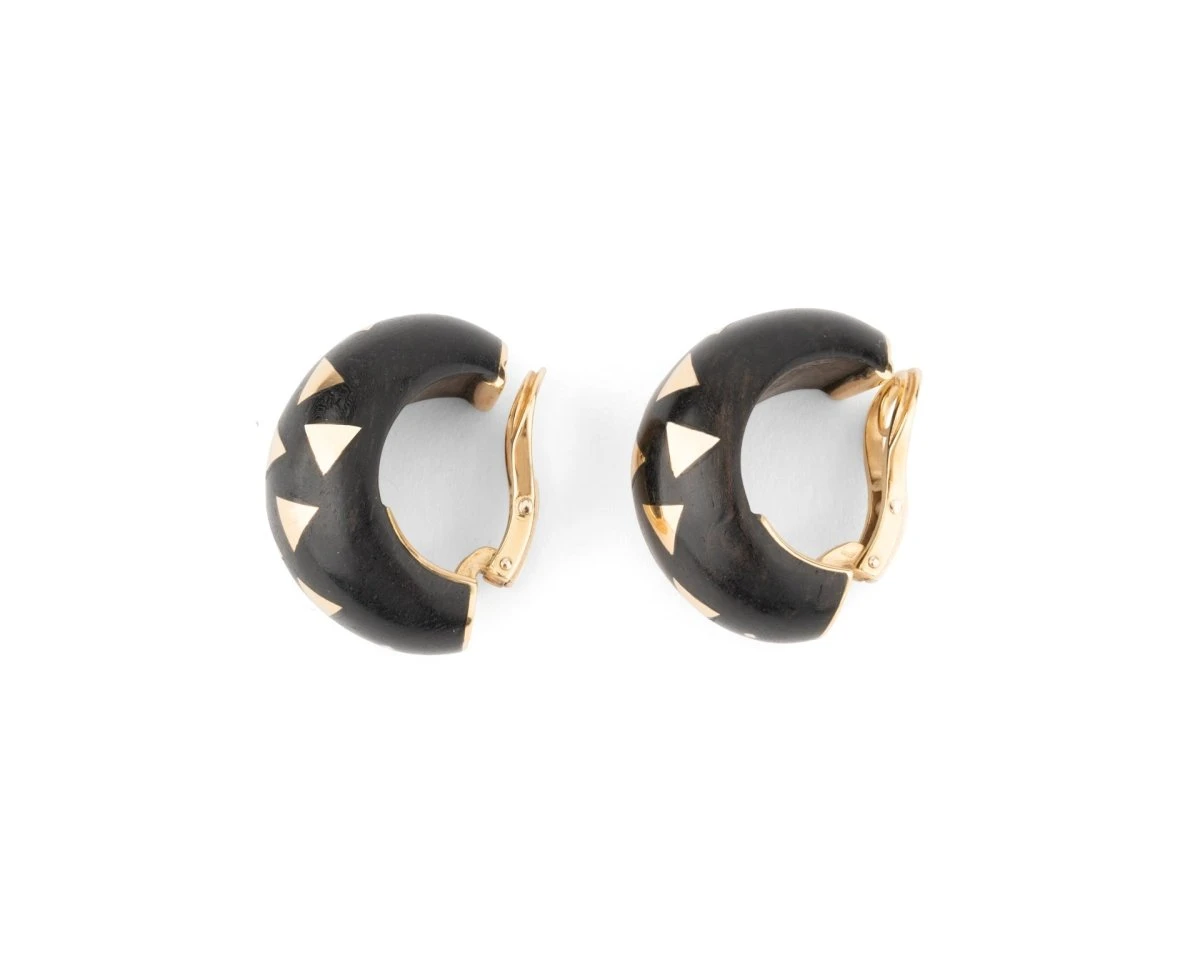 Boucles d’oreilles Clips VAN CLEEF & ARPELS en bois d’amourette et or jaune 18 carats.