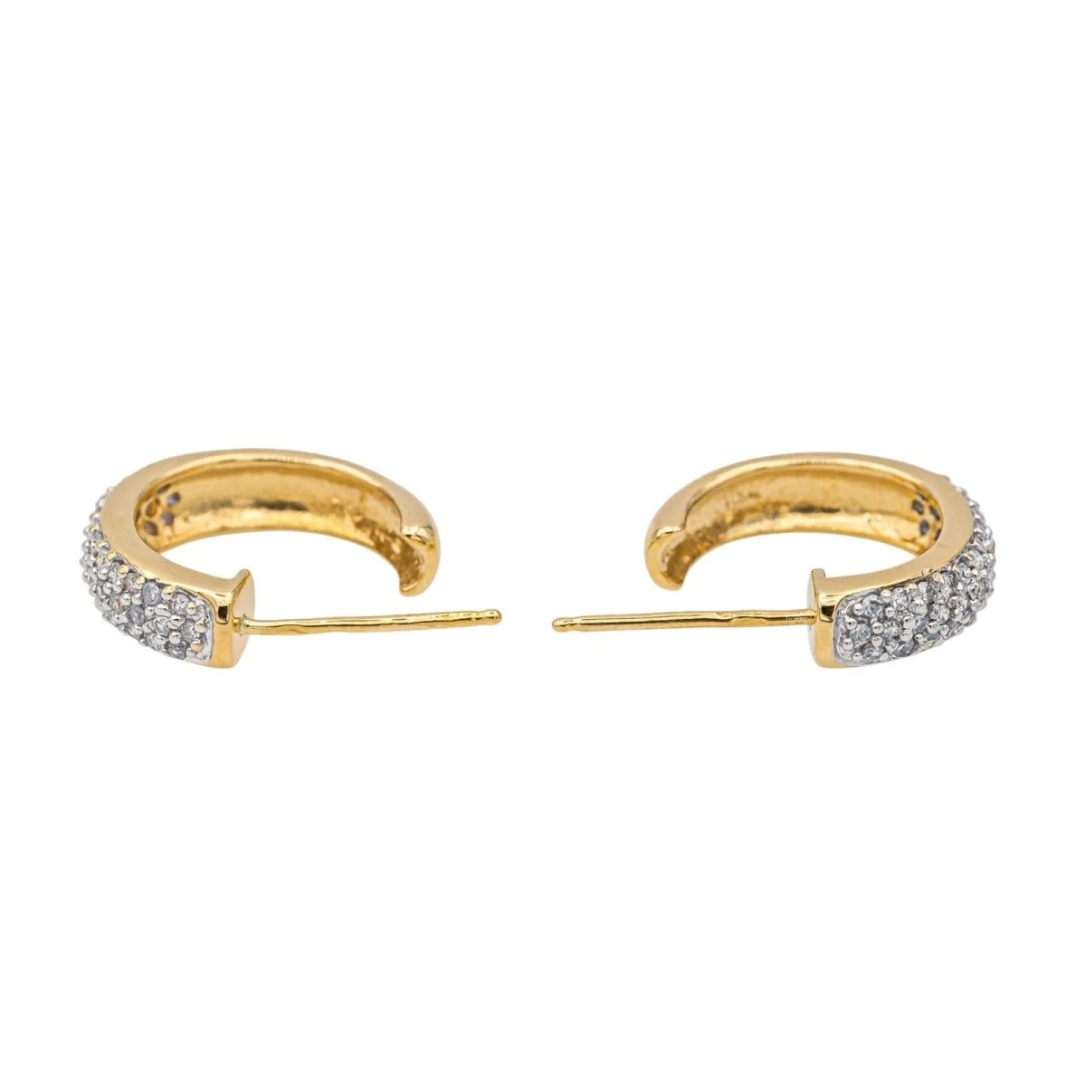Demi-créoles en or jaune 750 millièmes (18 carats). serties de 72 diamants taille brillant. d’un poids total d’environ 0.36 ct. (chaque diamant d’un poids d’environ 0.005 ct). diamètre : 1.57 cm. largeur : 0.39 cm. poids total : 4.81 g. poinçon tête d’aigle. excellent état