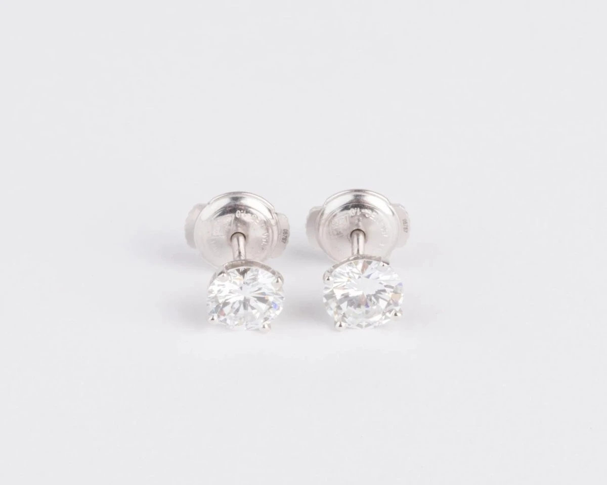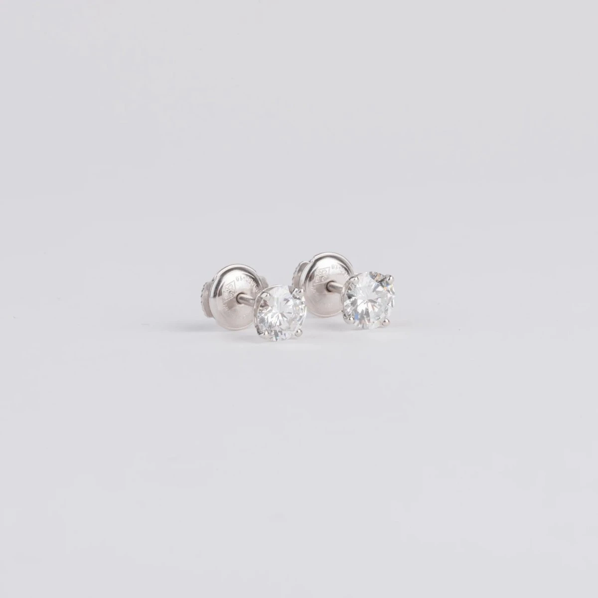 Paire de puce d’oreilles en diamant taille moderne de 0,80 cts couleur F Vs1 (certificat LFG du 27/07/2021) et 0,76 cts couleur E vvs1(certificat Union des diamantaires du 13/03/1980) ct avec certificat serti sur 4 griffes or gris .