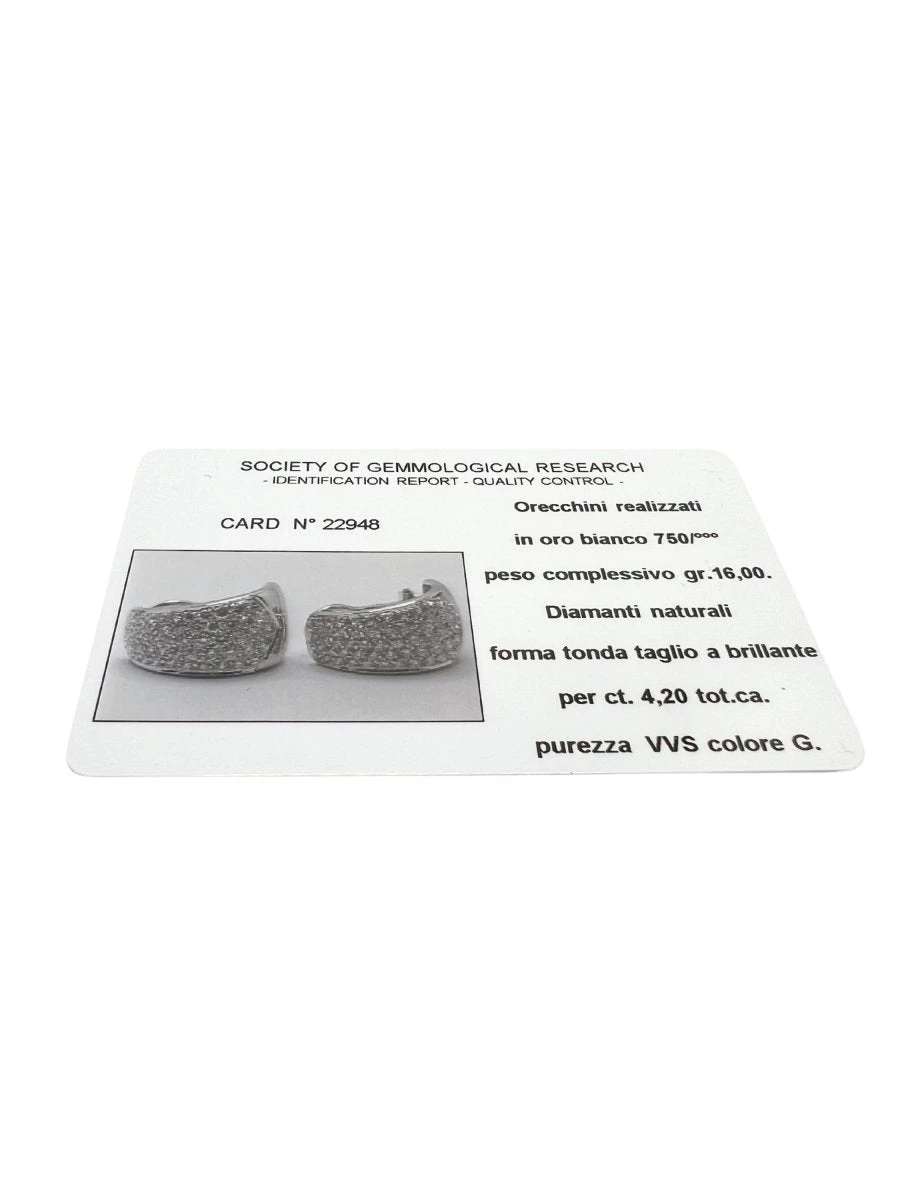Boucles d’oreilles en or blanc 18 carats serti de diamants taille brillant.