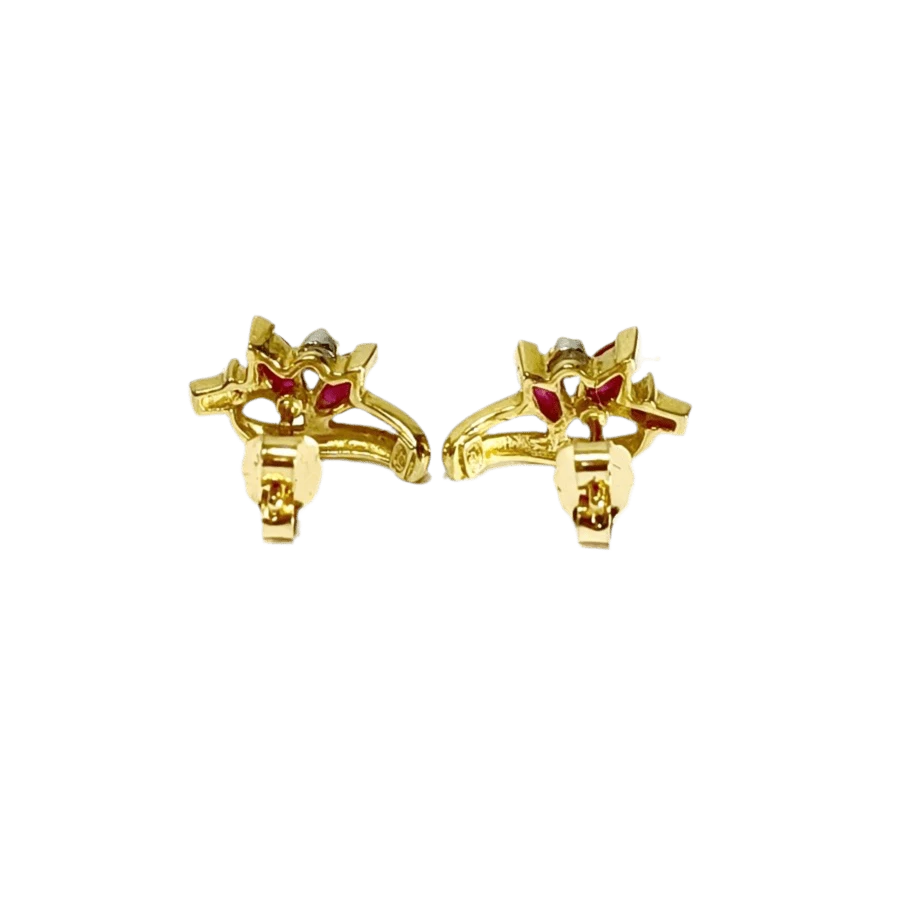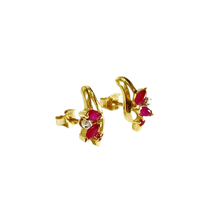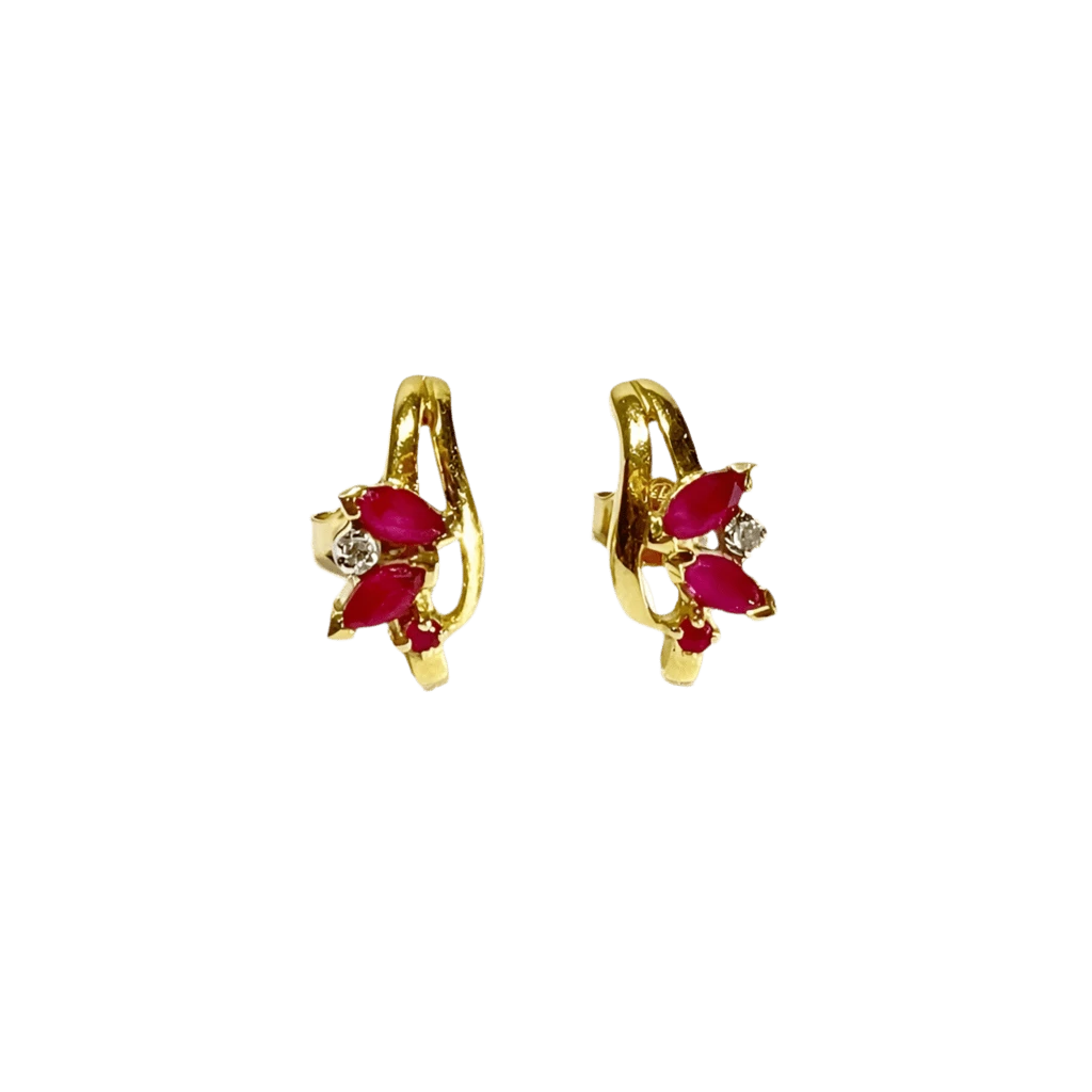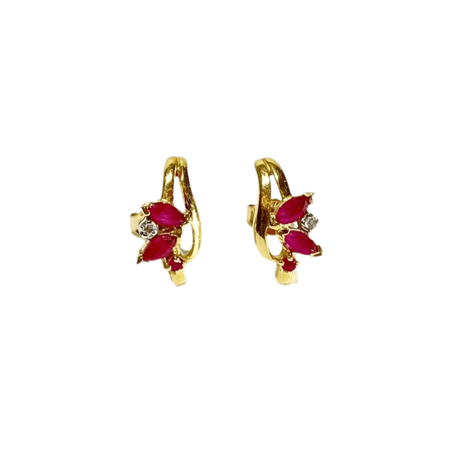Boucles D’oreilles En Or Jaune, Rubis Et Diamant