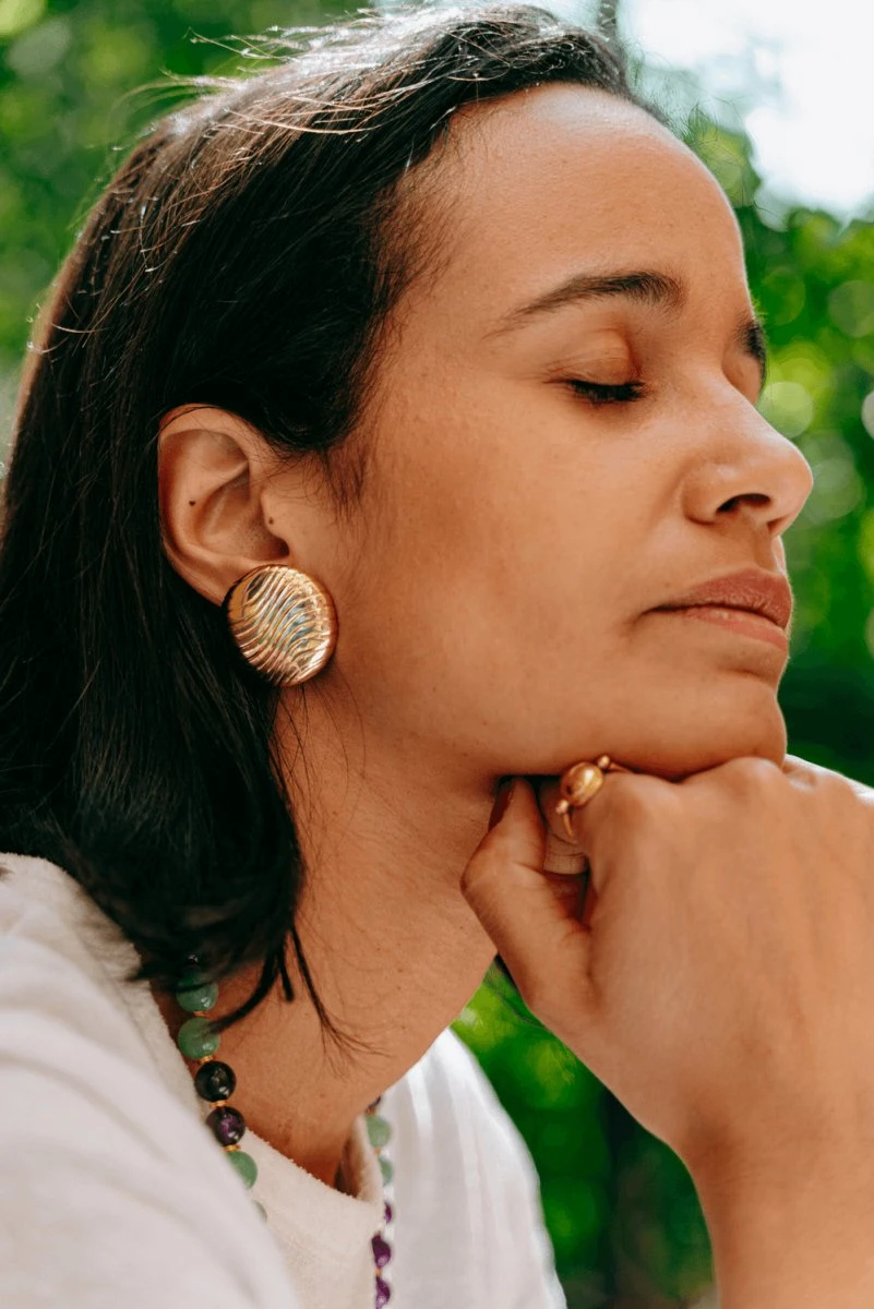 Boucles d’oreilles rondes en or jaune 18 carats, striées. Système à clip.