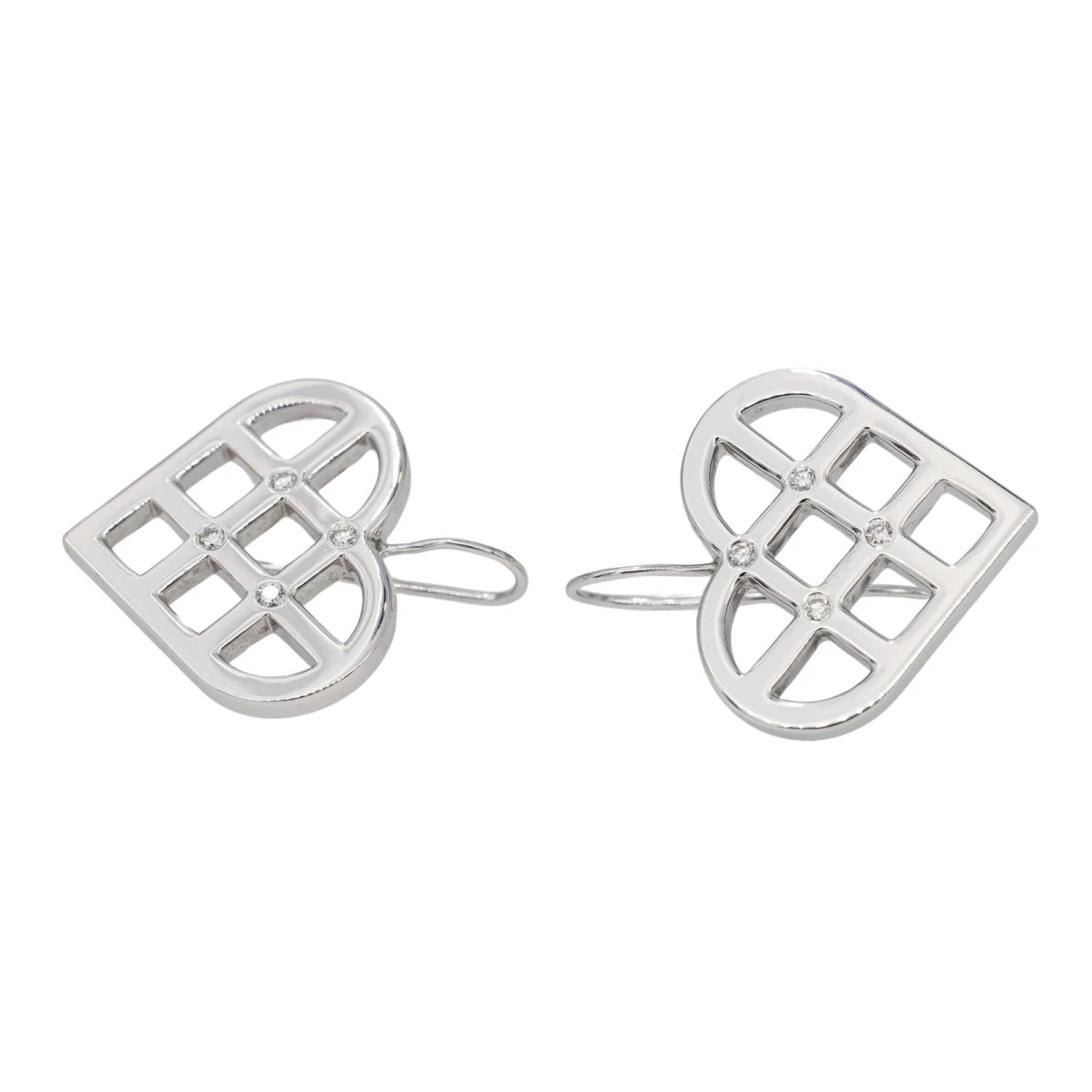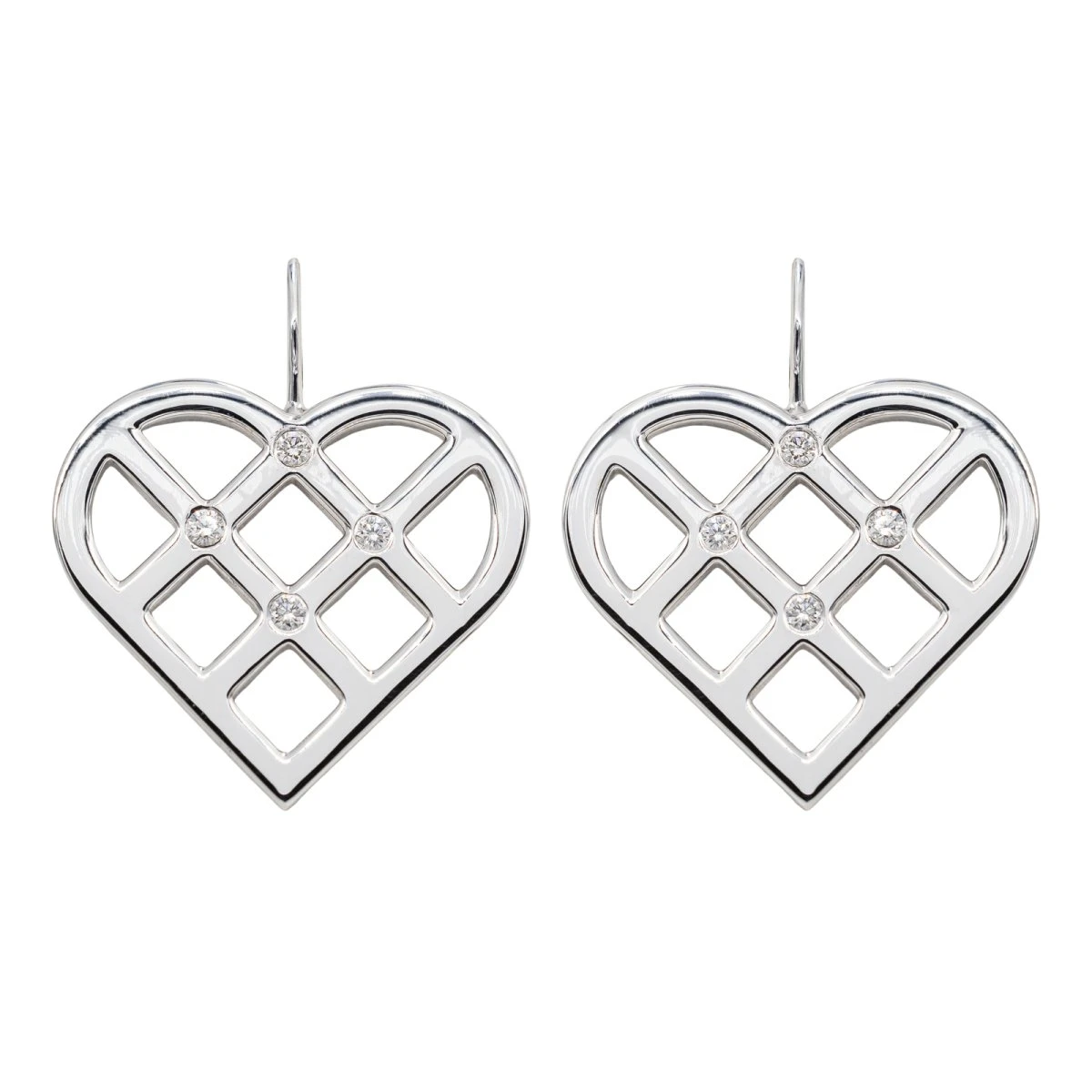 Paire de boucles d’oreilles en or blanc 750 millièmes (18 carats). signĂ©e de la Maison OJ Perrin. sertie chacune de 4 diamants taille brillant. environ 0.01 ct chacun. Poids total estimĂ© des diamants: 0.08 ct. Longueur totale: 2.97 cm. dimensions du coeur: 2.35 x 2.15 cm. Poids total: 14.82 g. poinçon hibou. Excellent Ă©tat