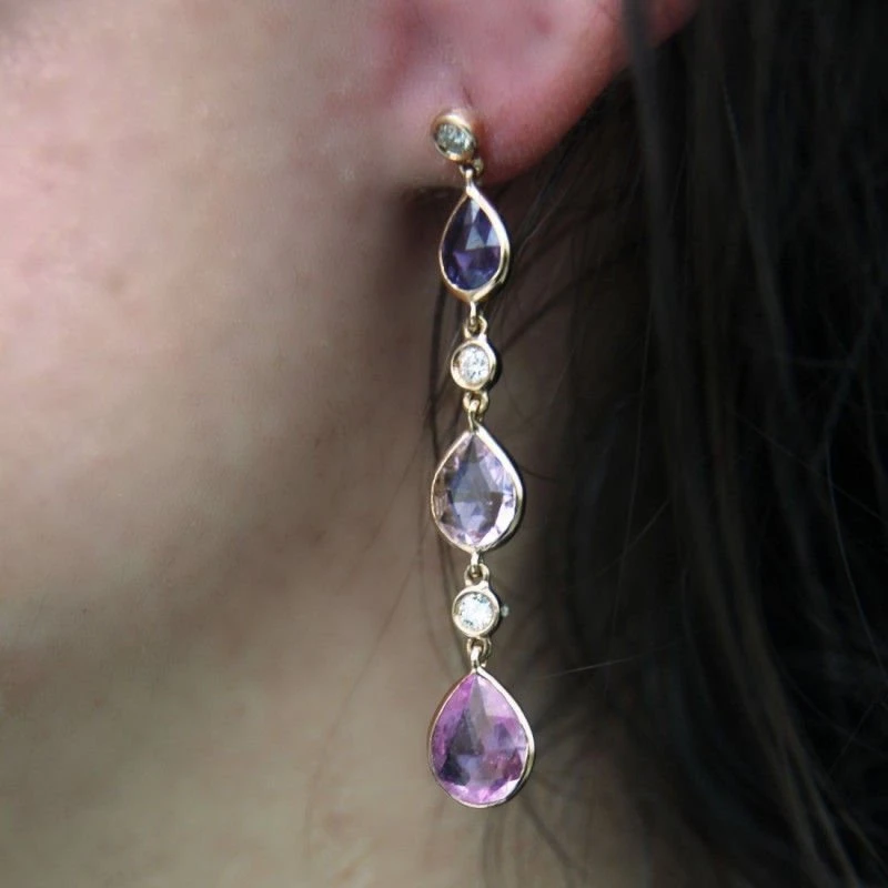 Boucles D’oreilles Or Rose Saphirs Diamants