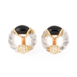 Boucle D’oreille En Or Jaune Onyx,cristal De Roche Et Diamant De La Maison Boucheron