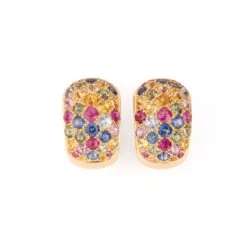Boucles D’oreilles RENÉ BOIVIN En Or Jaune Et Saphirs De Couleurs