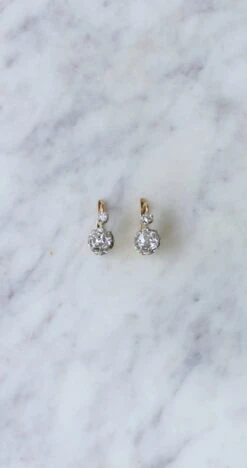 Boucles D’Oreilles Anciennes En Or Jaune Et Argent Ornées De Diamants