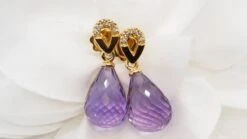 Boucles D’oreilles Pendantes Girandoles En Or Jaune Et Améthystes