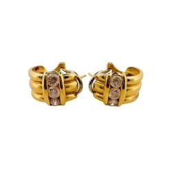 Paire De Boucles D’oreilles En Or Jaune Et Or Blanc 18 Carats En Topazes Cabochons