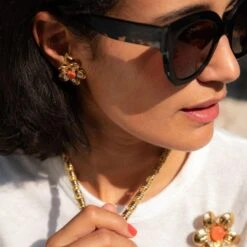 Boucles D’oreilles Clip CHAUMET En Or Jaune, Corail Rose Et Diamants