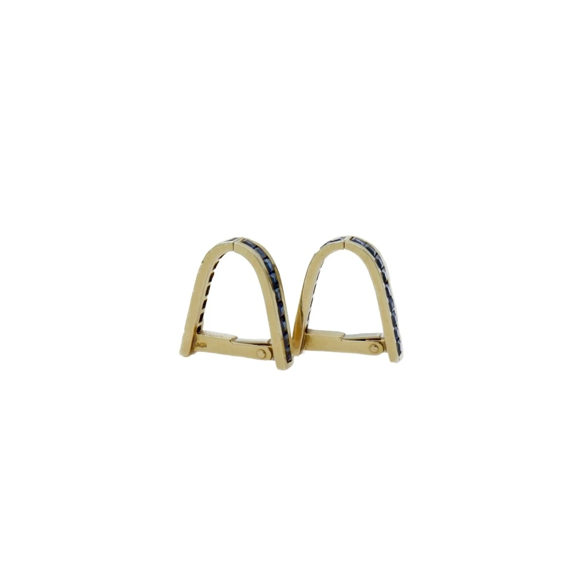 Paire de boutons de manchette en or jaune 18 carats sertis de saphirs calibrĂ©s.Â