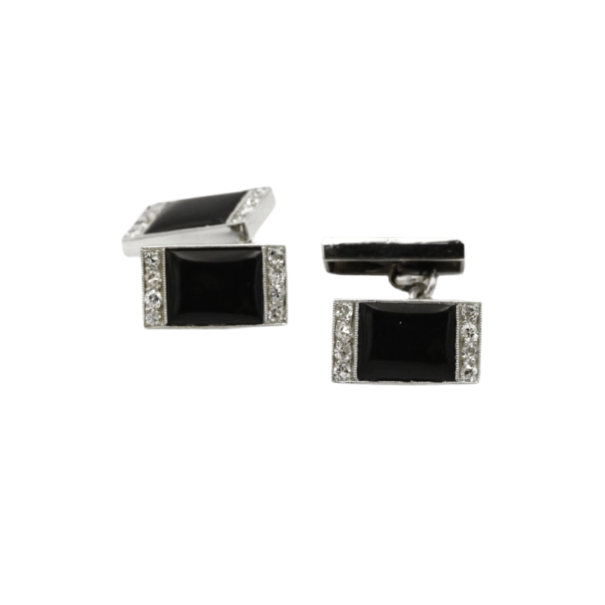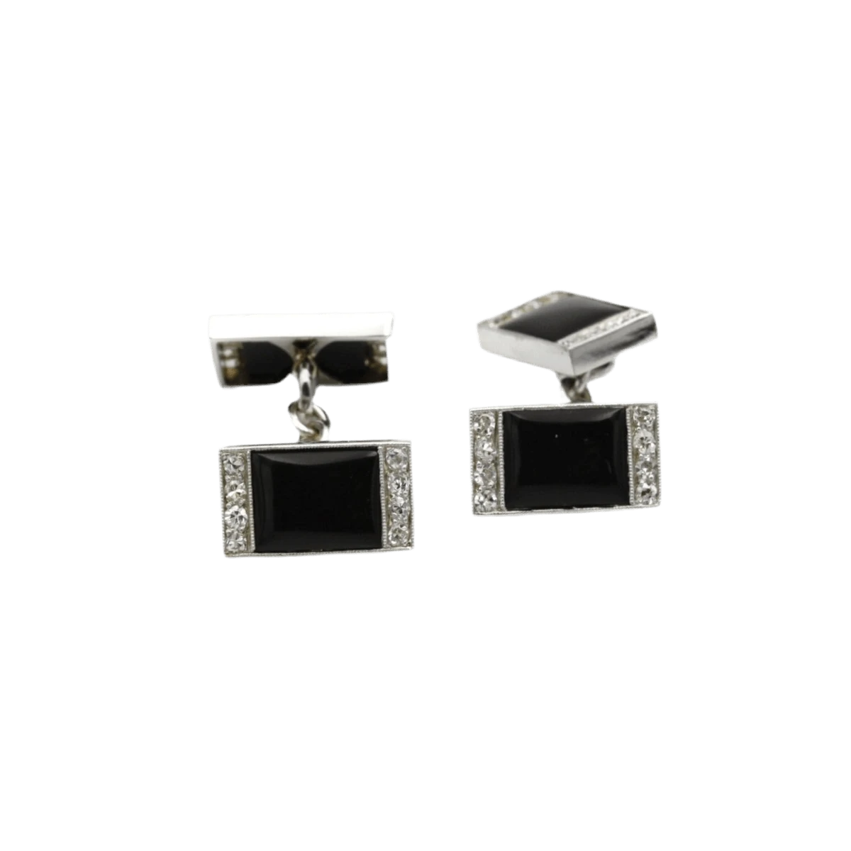 Boutons De Manchettes En Or Blanc, Onyx Et Diamants
