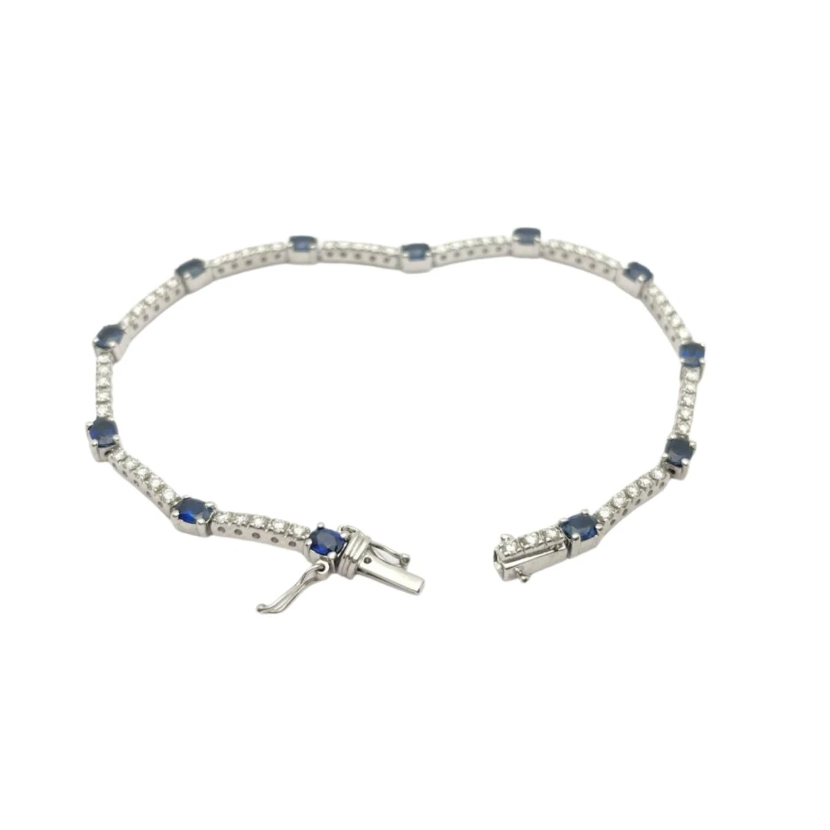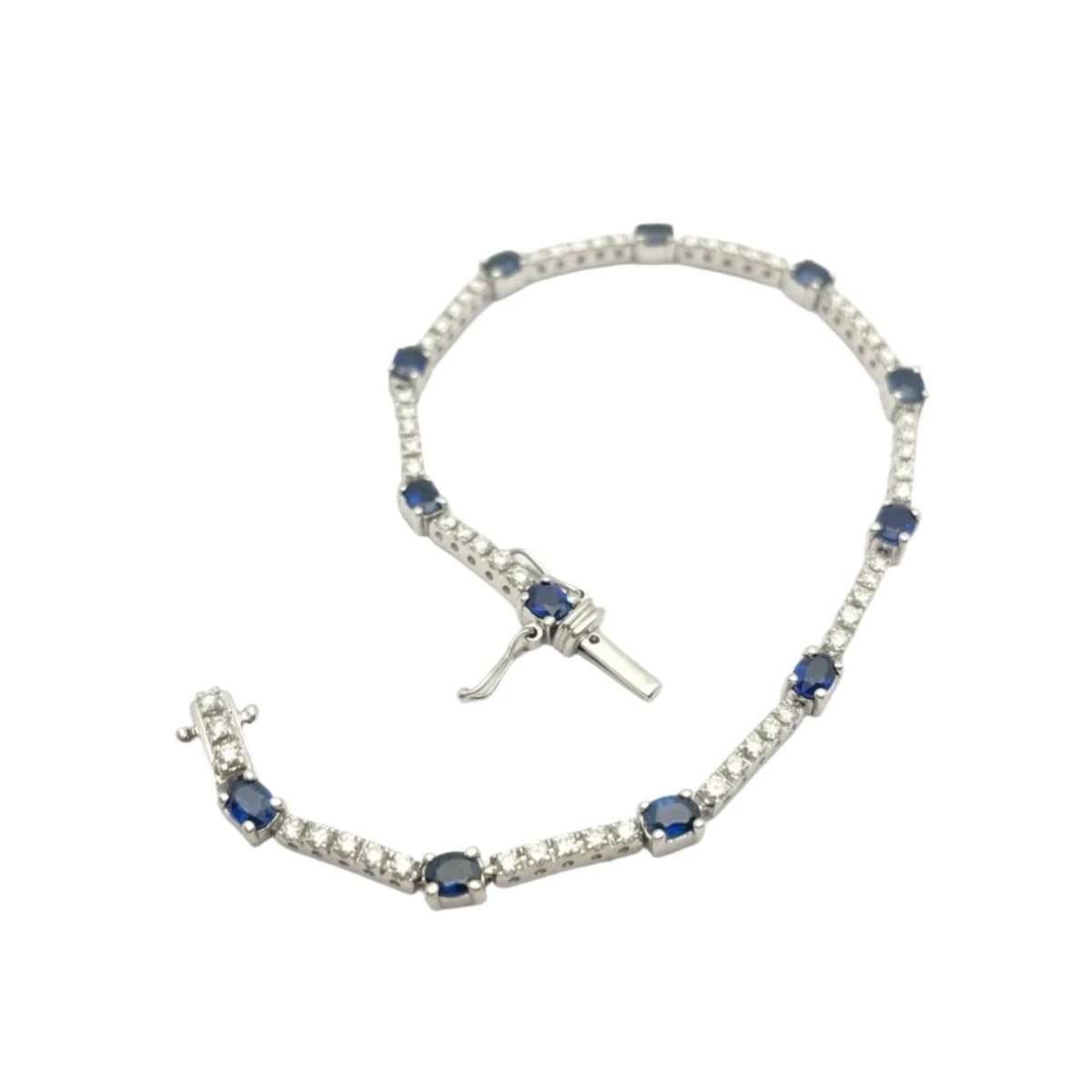 Bracelet En Or Blanc, Saphir Et Diamants