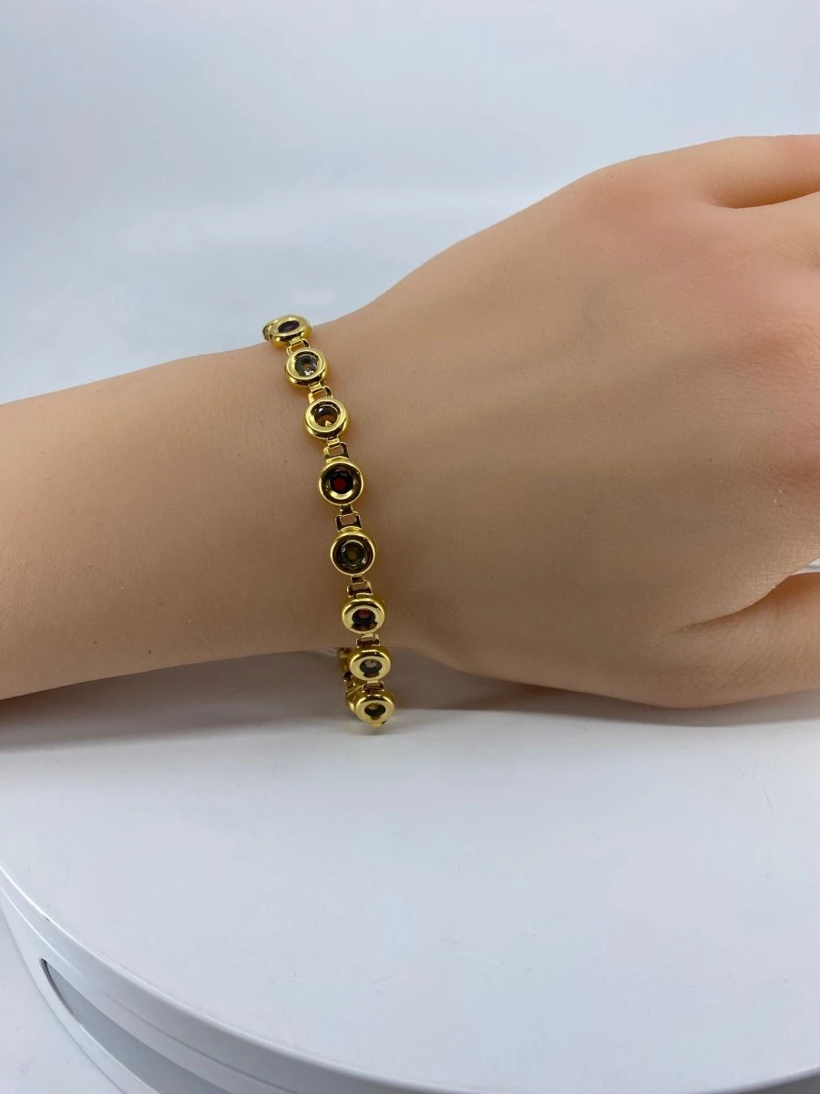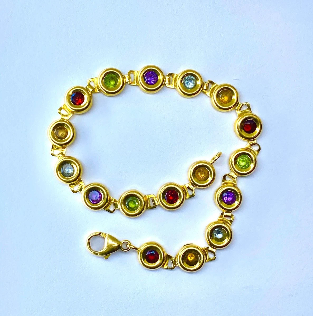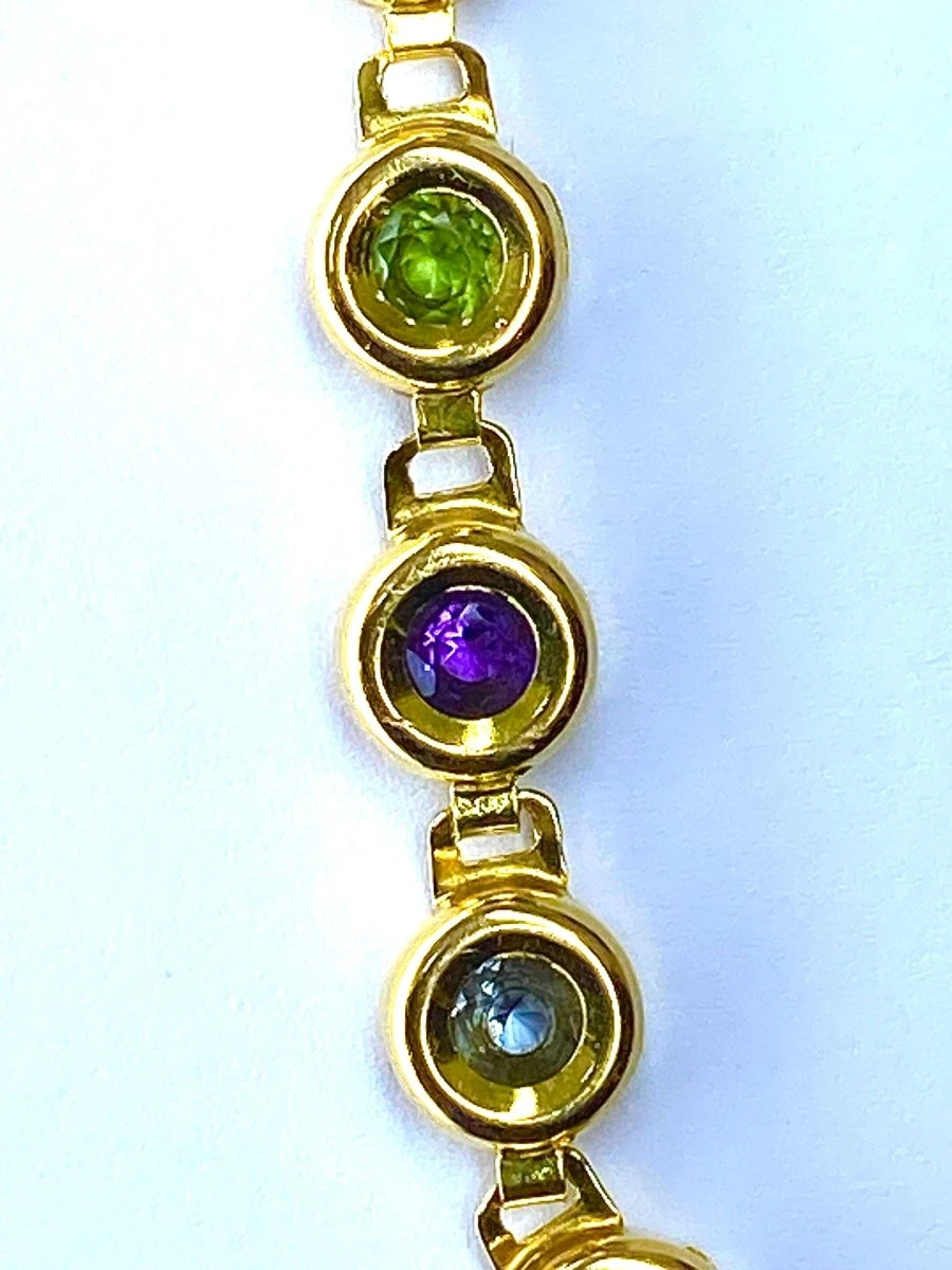 Bracelet en or jaune 18 carats orné de 17 pierres fines :citrines / grenats/ peridots/aigue marine en serti clos.