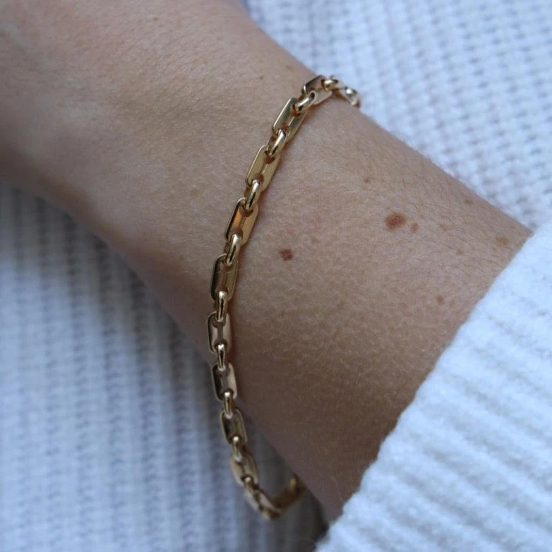 Bracelet Gourmette Maille Grain De Café En Or Jaune