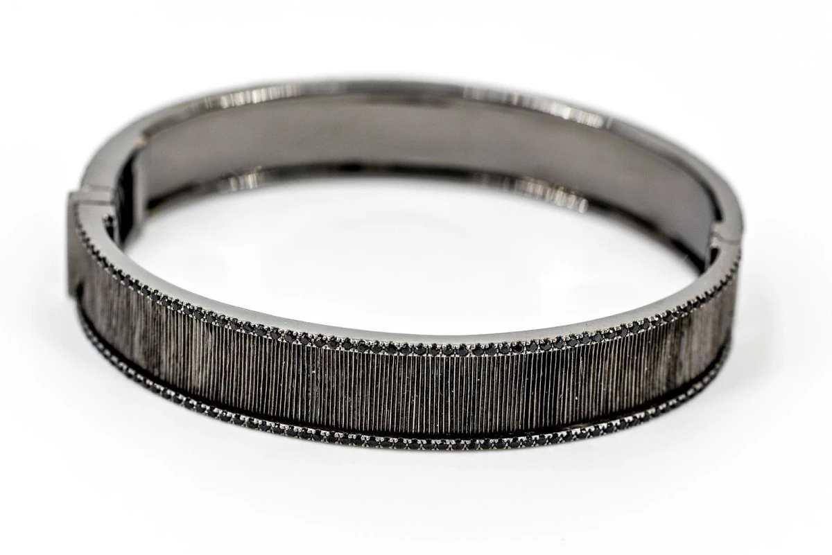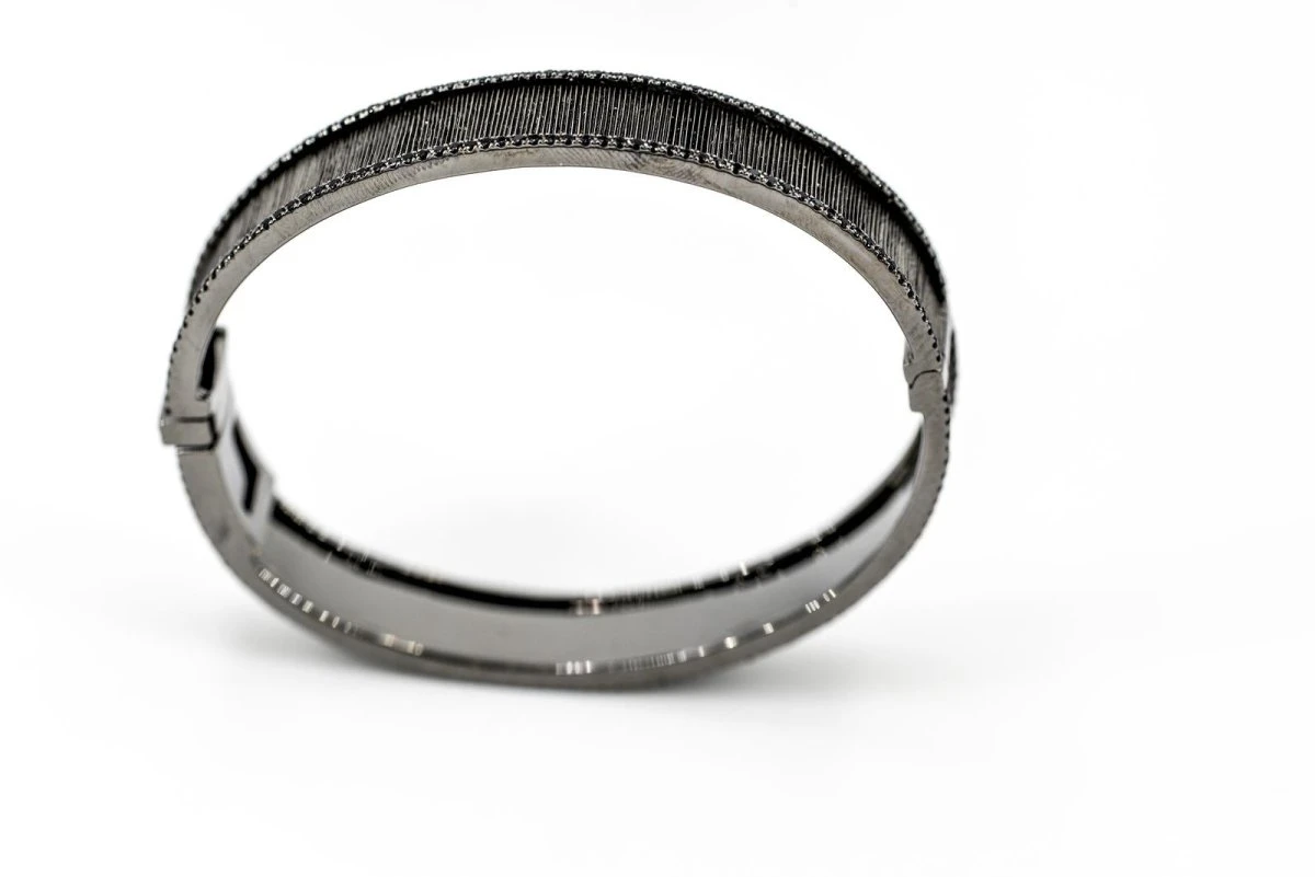 Bracelet signé de la maison ETERNAMÉ, Collection « Lunaria » en or noir 18 carats, serti sur des tranches de spinelles noires.