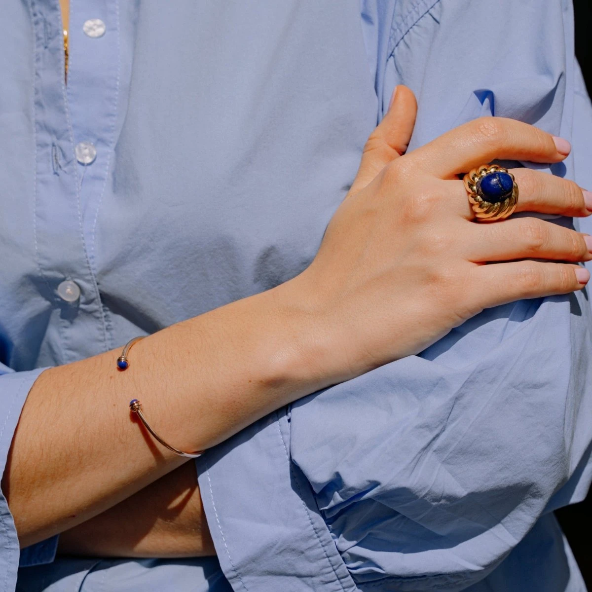 Bracelet Jonc PIAGET « Possession » en or rose 18 carats, orné de deux cabochons de lapis lazuli.
