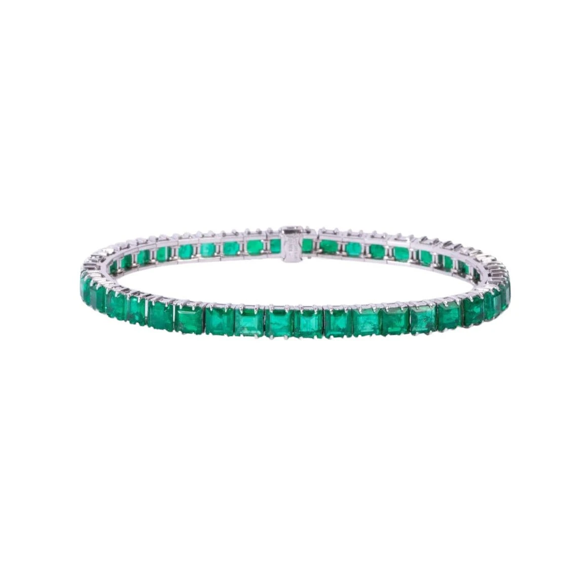 Bracelet Ligne BOUCHERON en or blanc 18 carats et émeraudes. Circa 1950.
