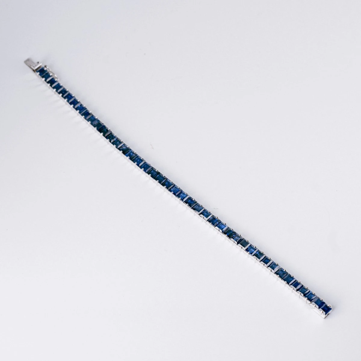Bracelet Ligne de saphirs carrés en platine. Signé MELLERIO. Avec son écrin.