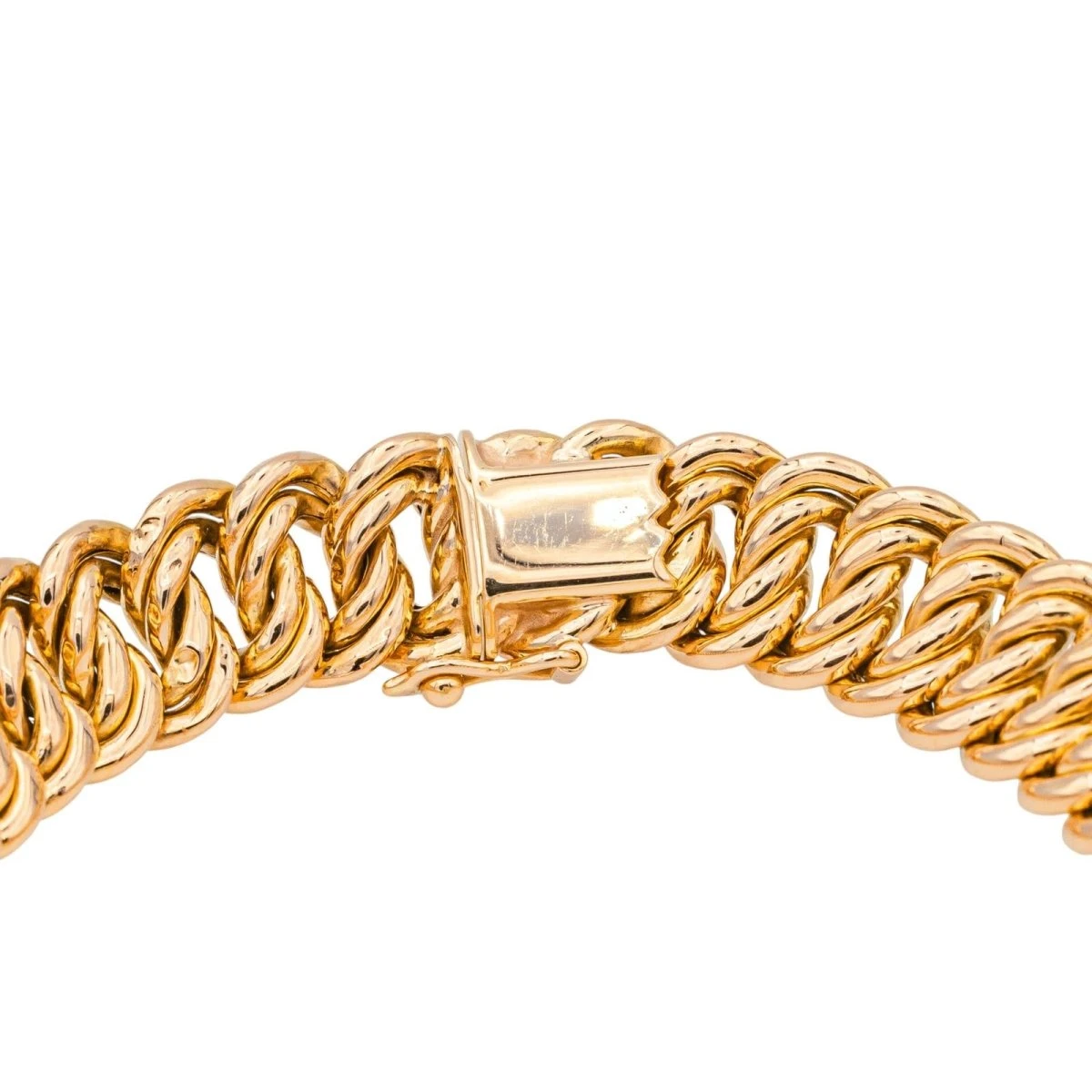 Bracelet en or rose 750 millièmes (18 carats). maille américaine. longueur : 19 cm. largeur : 1.02 cm. épaisseur : 0.27 cm. poids total : 17.77 g. fermoir à languette. poinçon tête d’aigle. excellent état