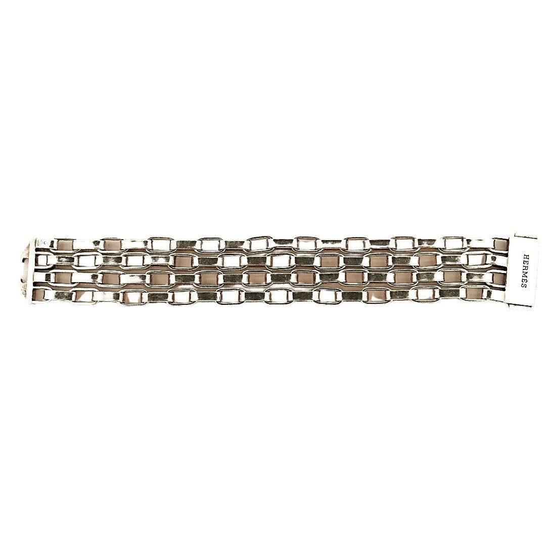 Bracelet Souple signé HERMÈS en argent 925 composé de quatre rangs de maillons rectangulaires.