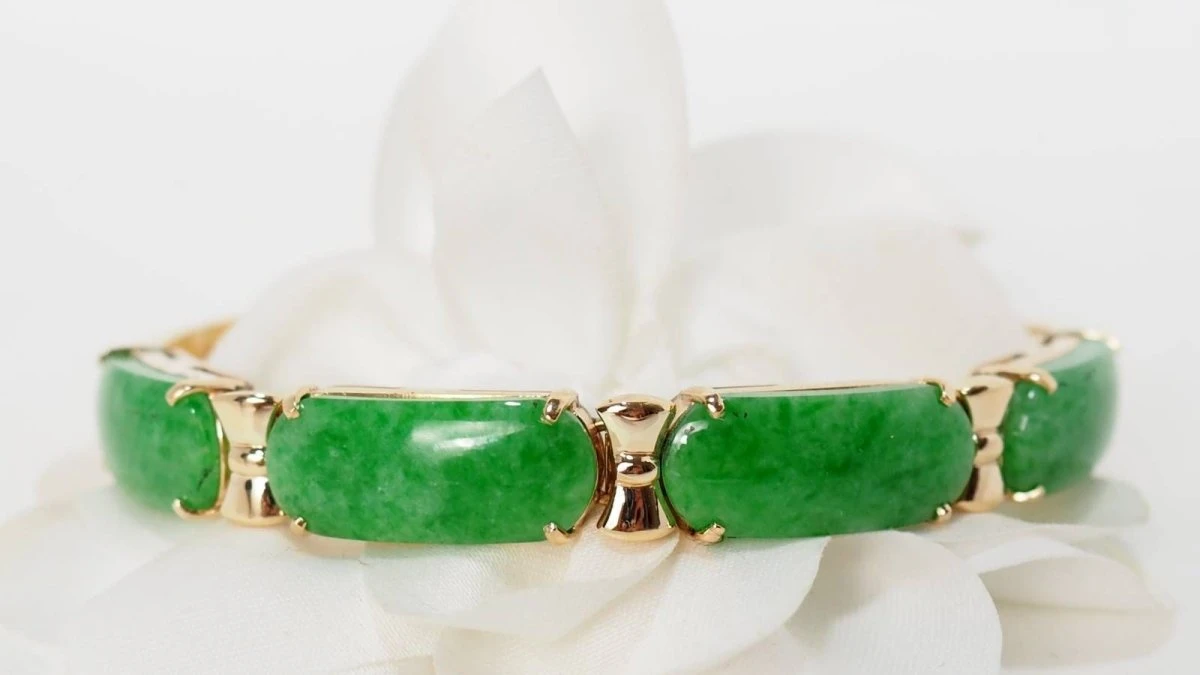 Bracelet Vintage En Or Jaune, Jade Et Diamants