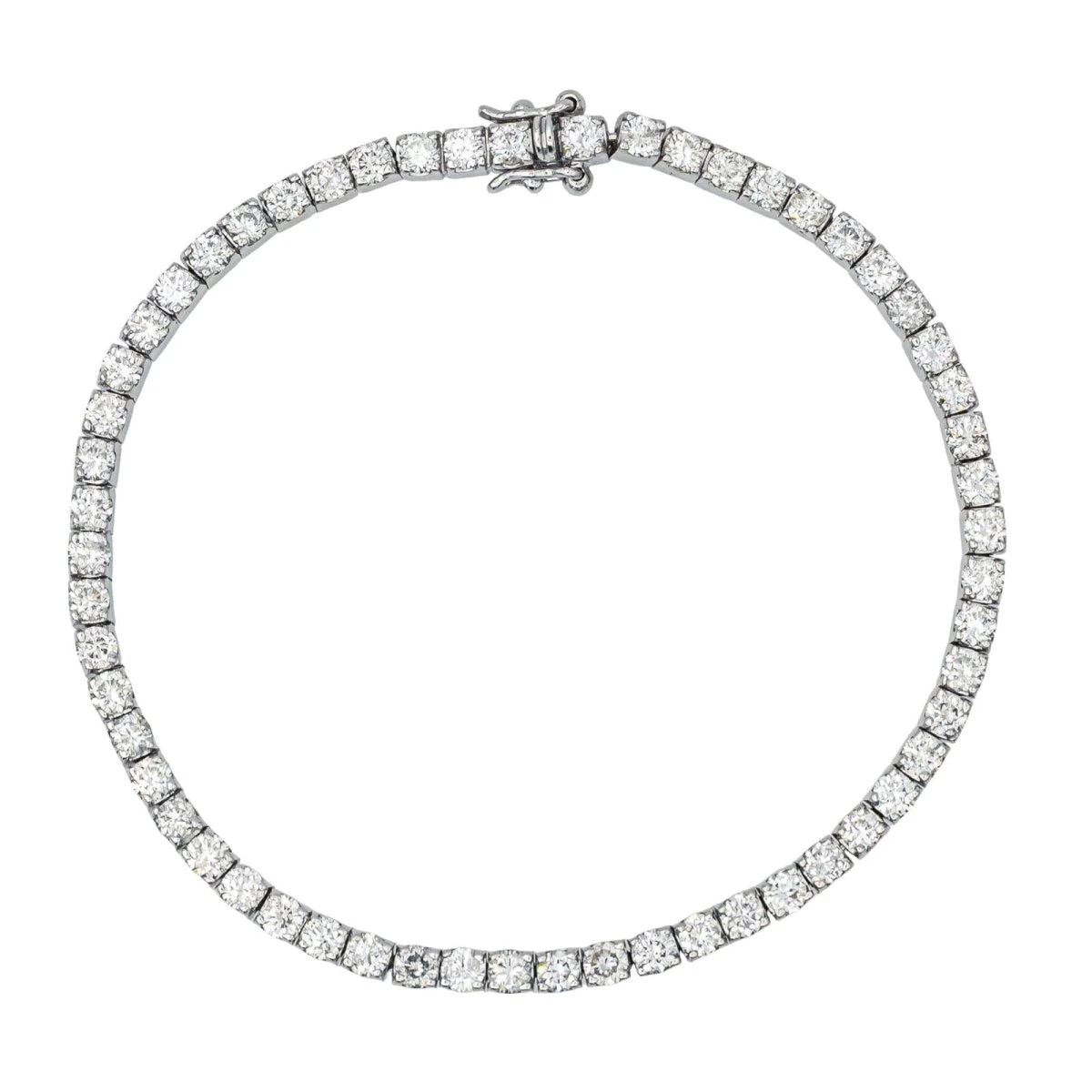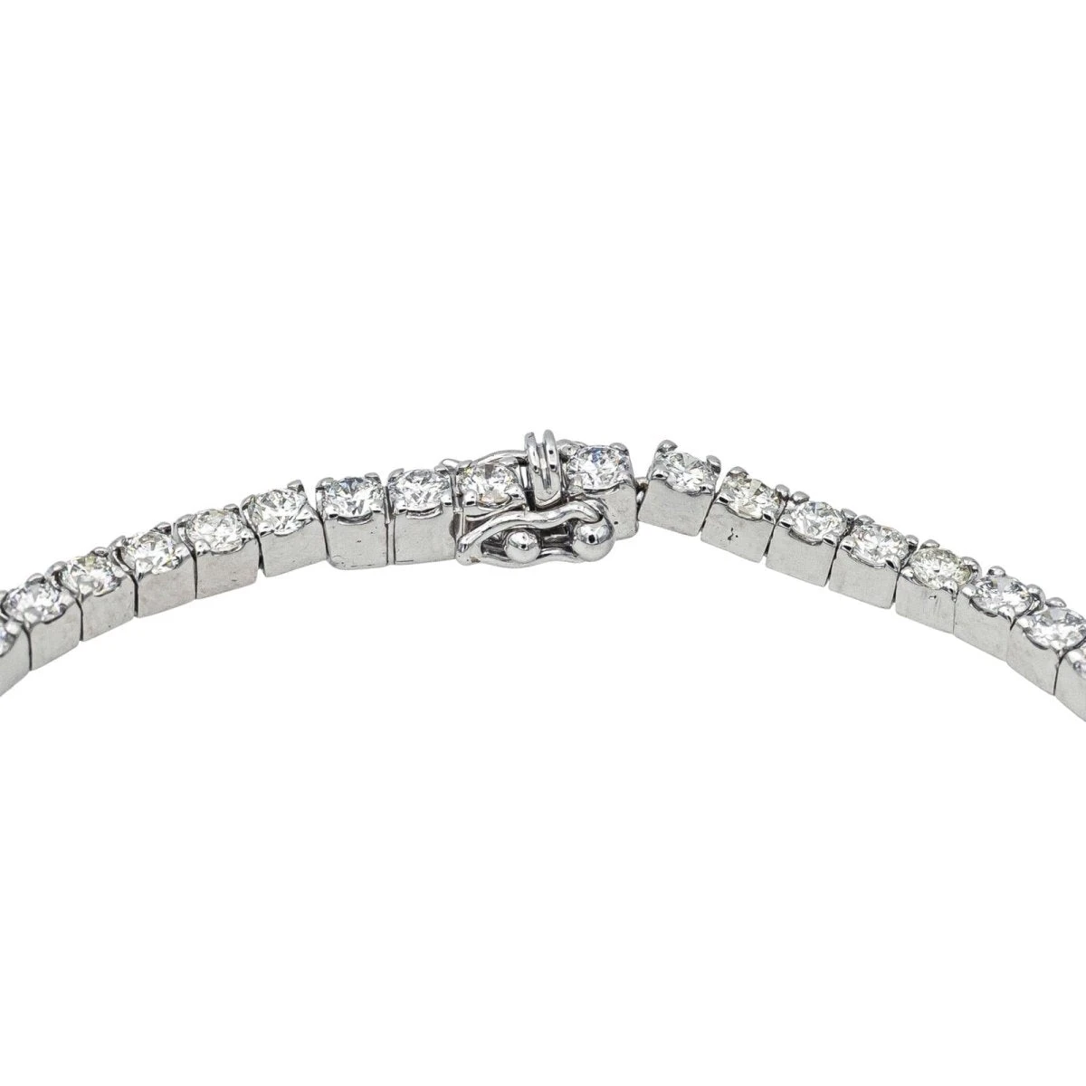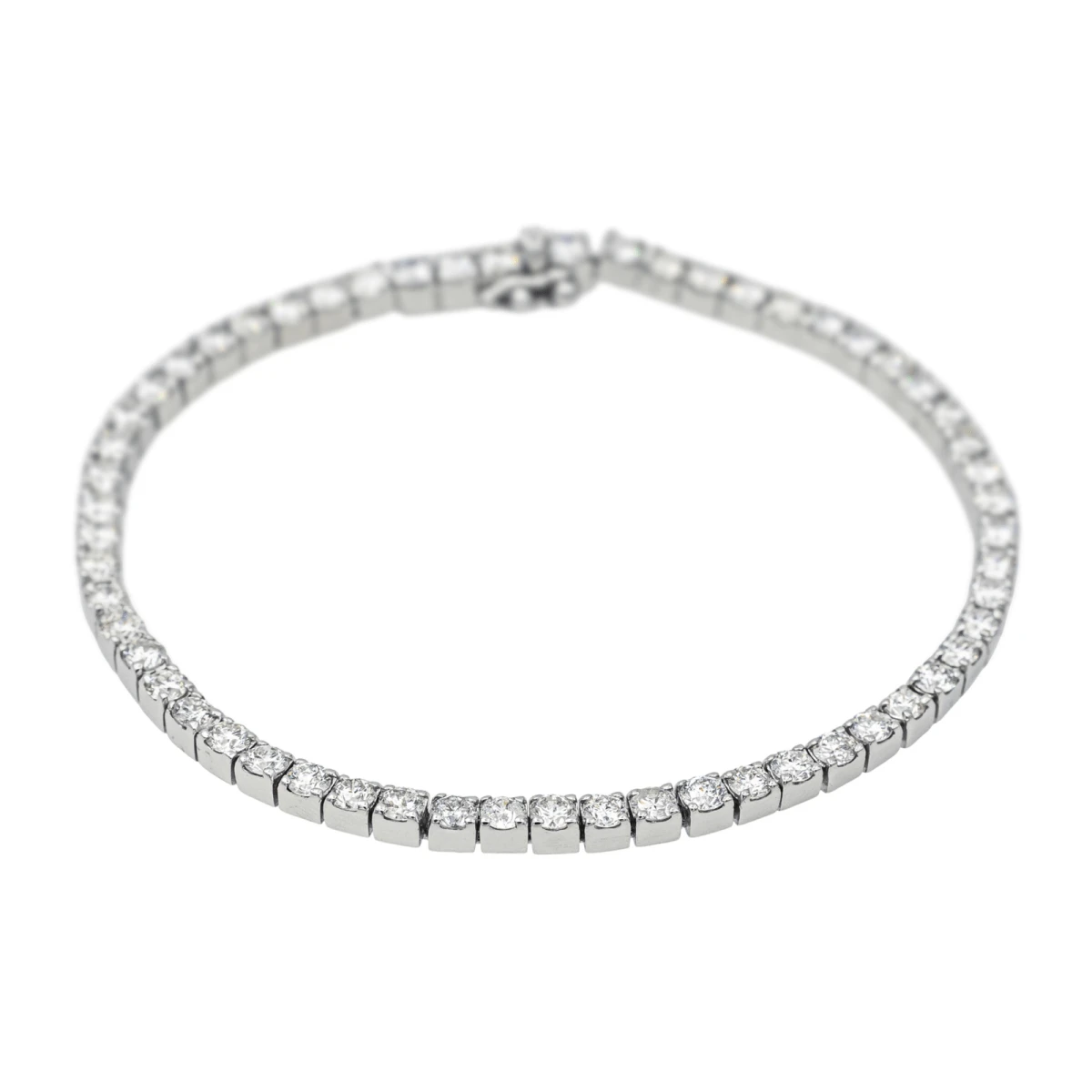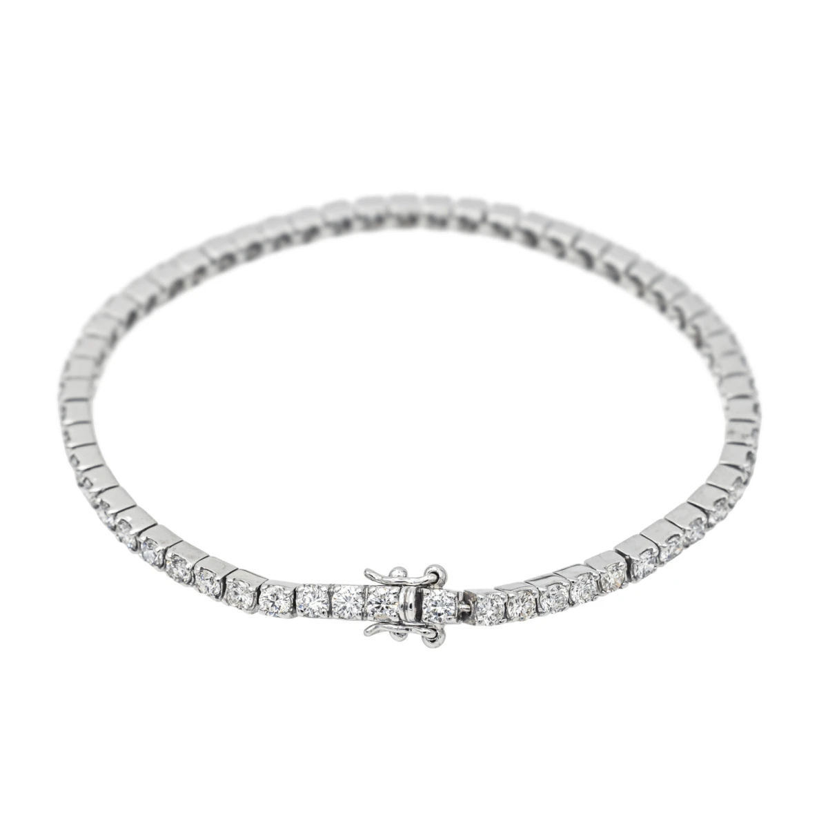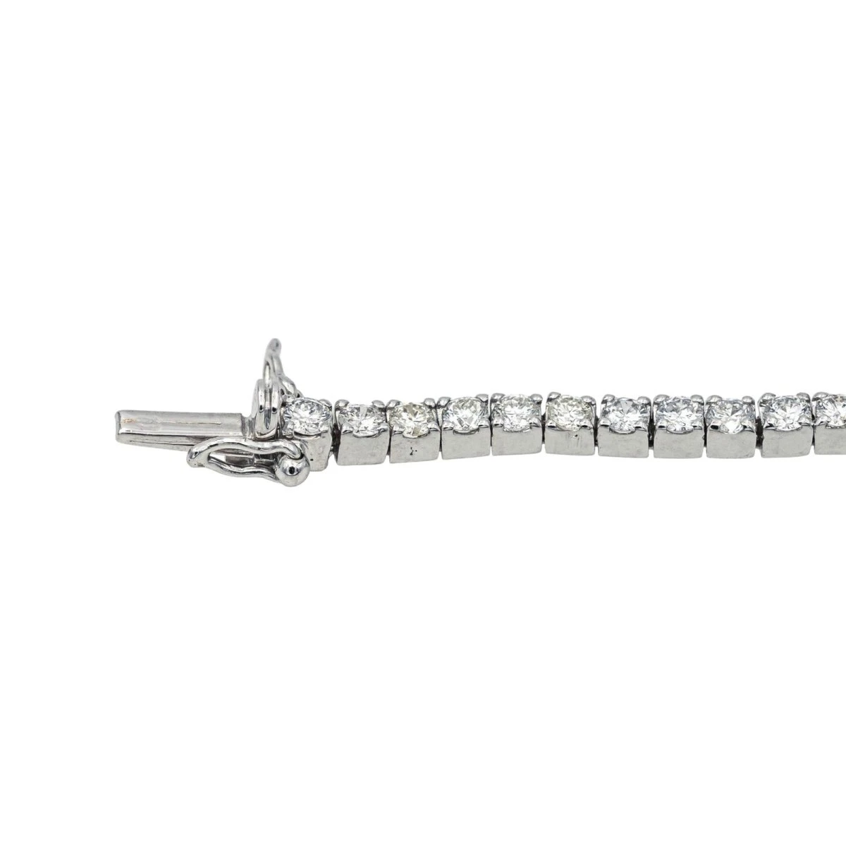 Bracelet en or blanc 750 millièmes (18 carats). serti de diamants. 58 diamants taille brillant. d’un poids total d’environ 3.48 cts. (chaque diamant d’un poids d’environ 0.06 ct). maille souple. longueur : 17 cm. largeur : 0.30 cm. épaisseur : 0.30 cm. fermoir avec huit de sécurité. poids total : 9.91 g. poinçon hibou. excellent état