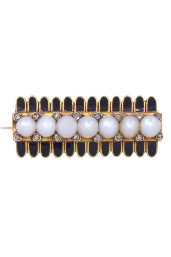 Broche Ancienne Perles émail Et Diamants En Or Jaune