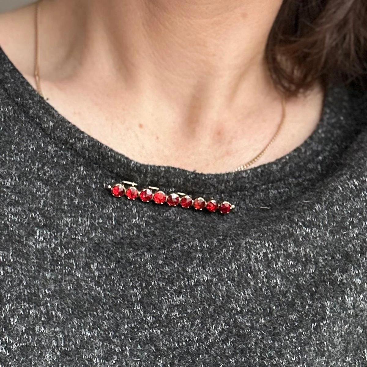 Broche Barrette En Or Jaune Et Grenats Almandins