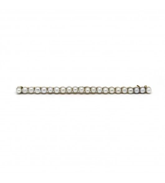 Broche barrette en or jaune 18 carats, composé de 22 perles