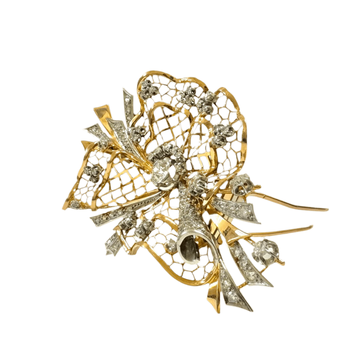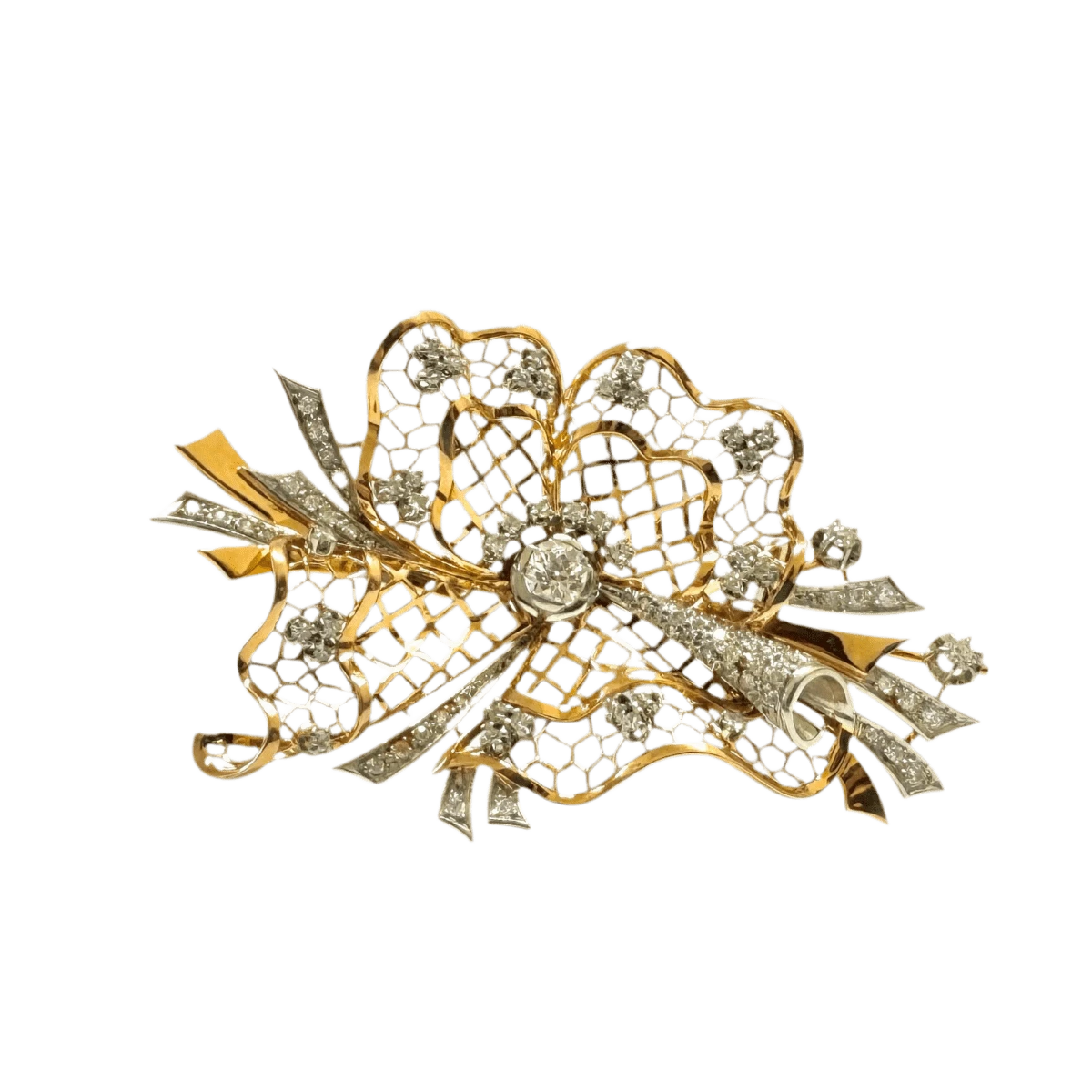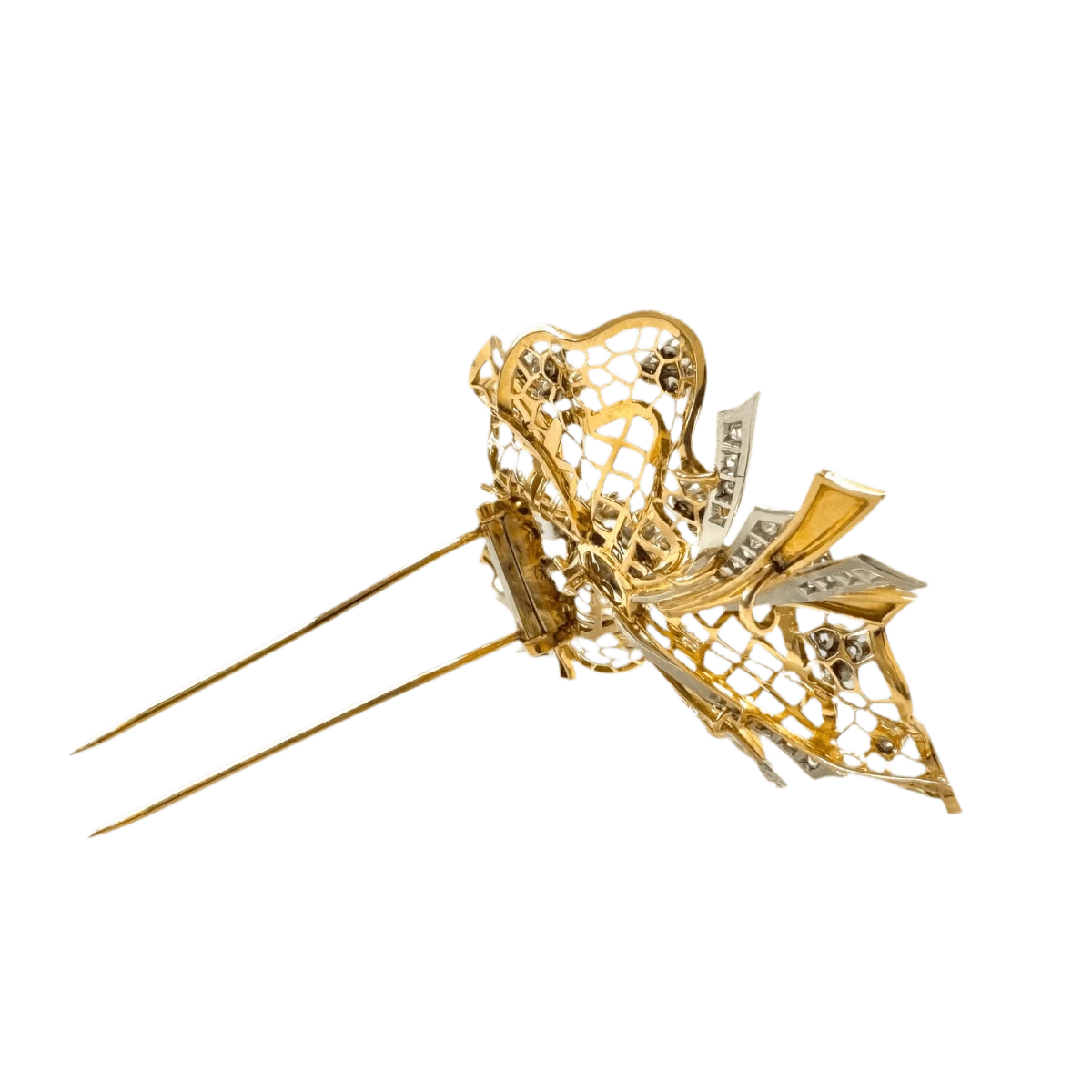 Broche Clip En Or Jaune, Platine Et Diamants