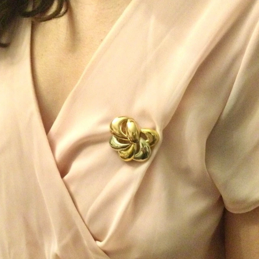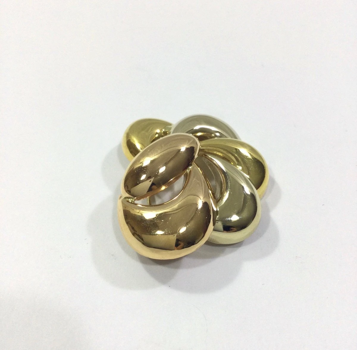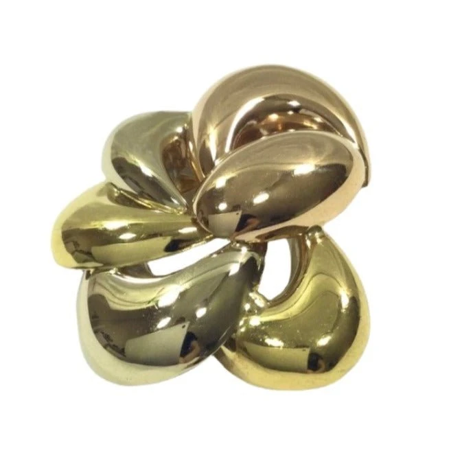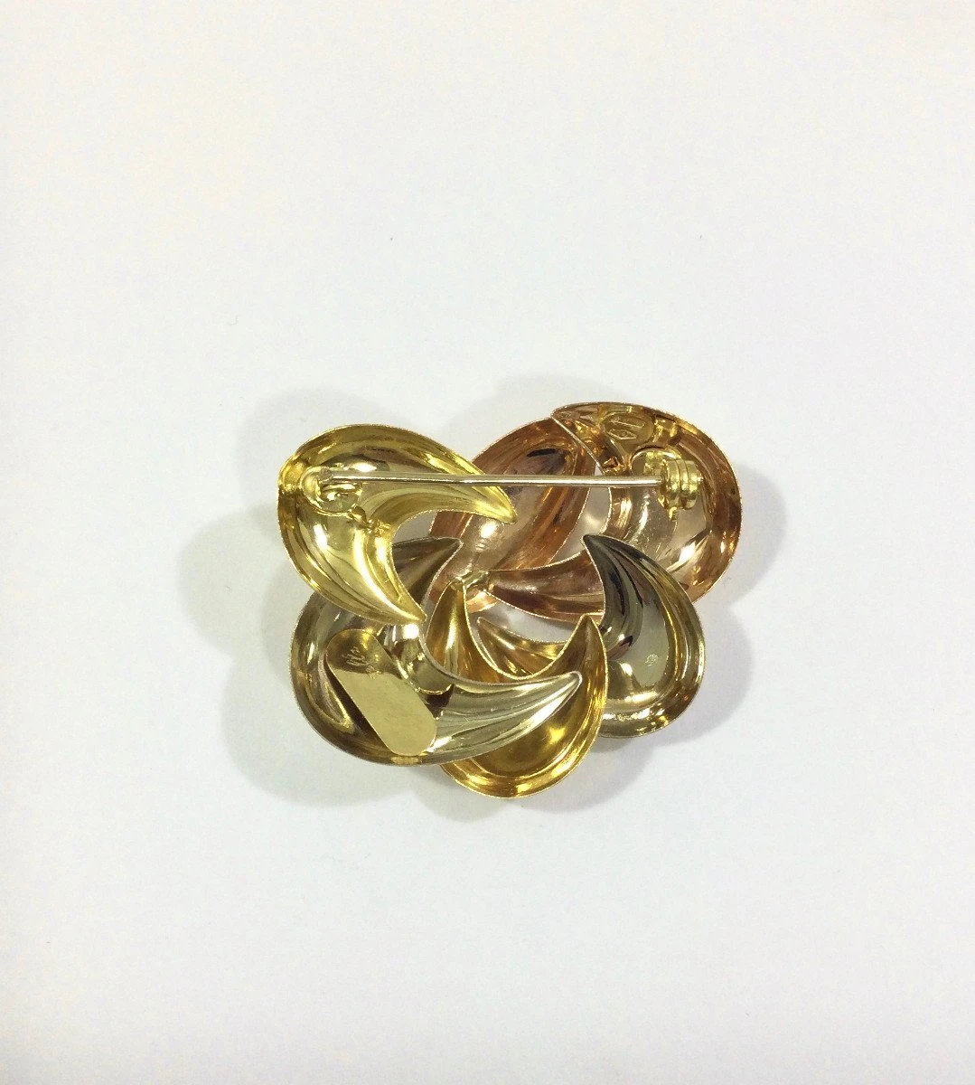 Broche en or rose, jaune et blanc 18 carats ajourée. Travail Italien des années 1970, poinçonné 750. Signature du joaillier italien Gasparella légèrement effacée à l’intérieur.